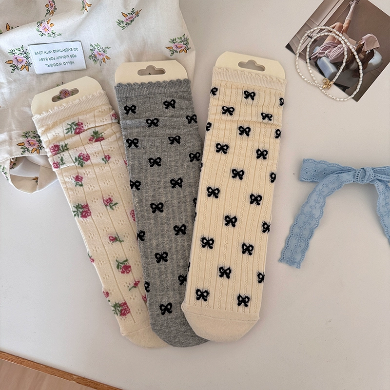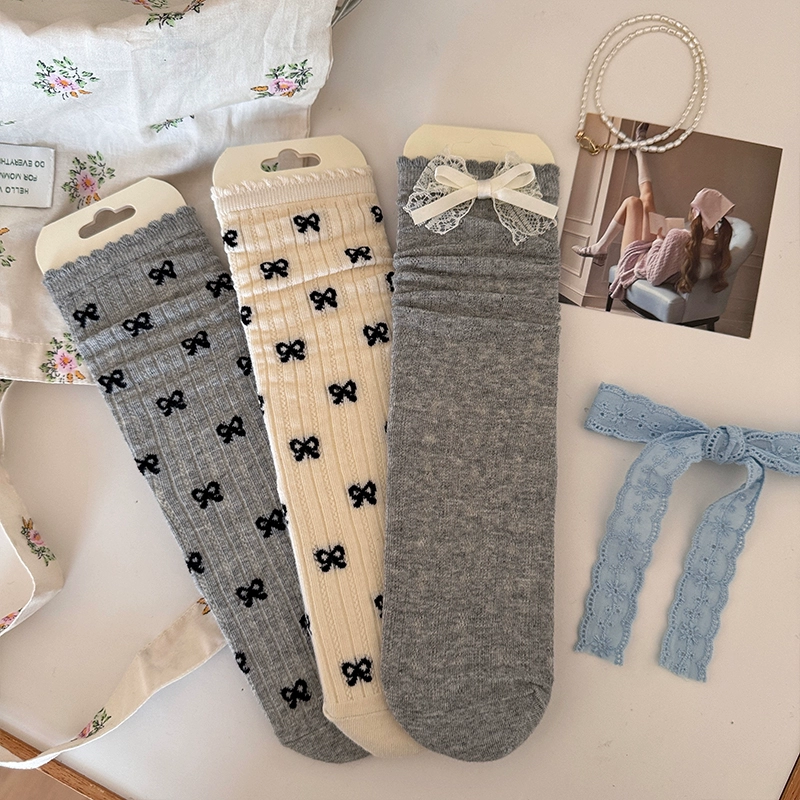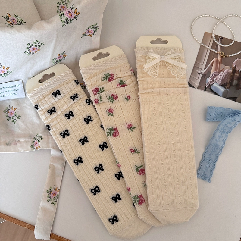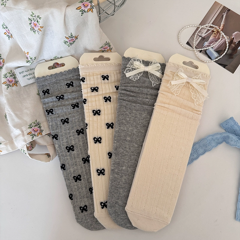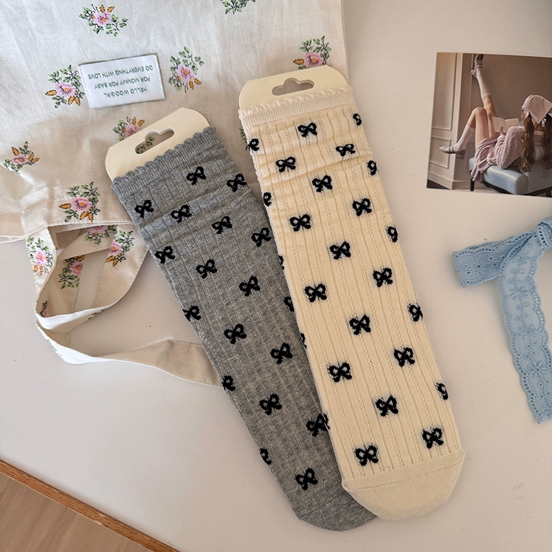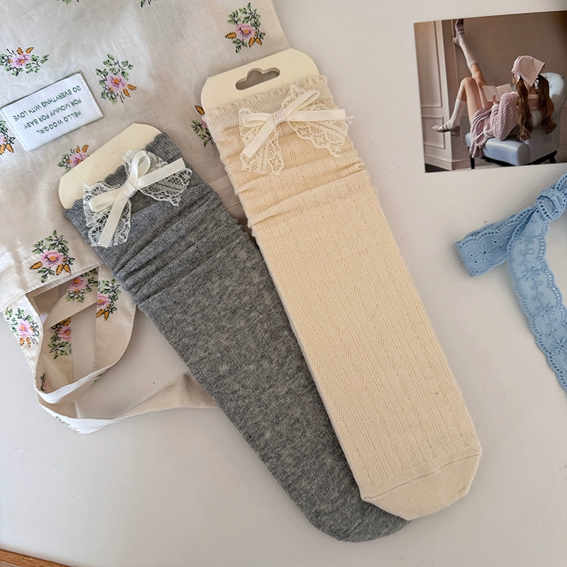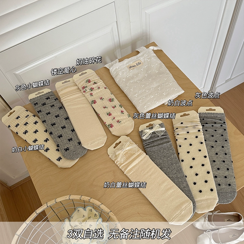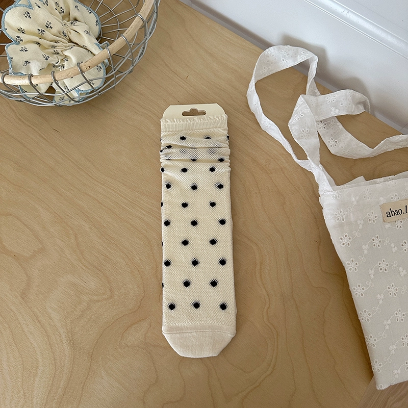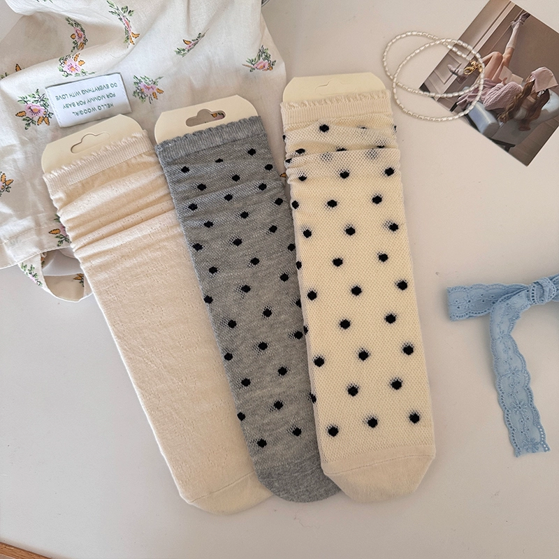 | nameOriginal | White lace socks summer thin women's pure cotton mesh hollow tube socks bow knot polka dot summer pile socks |