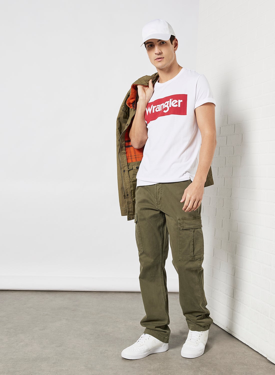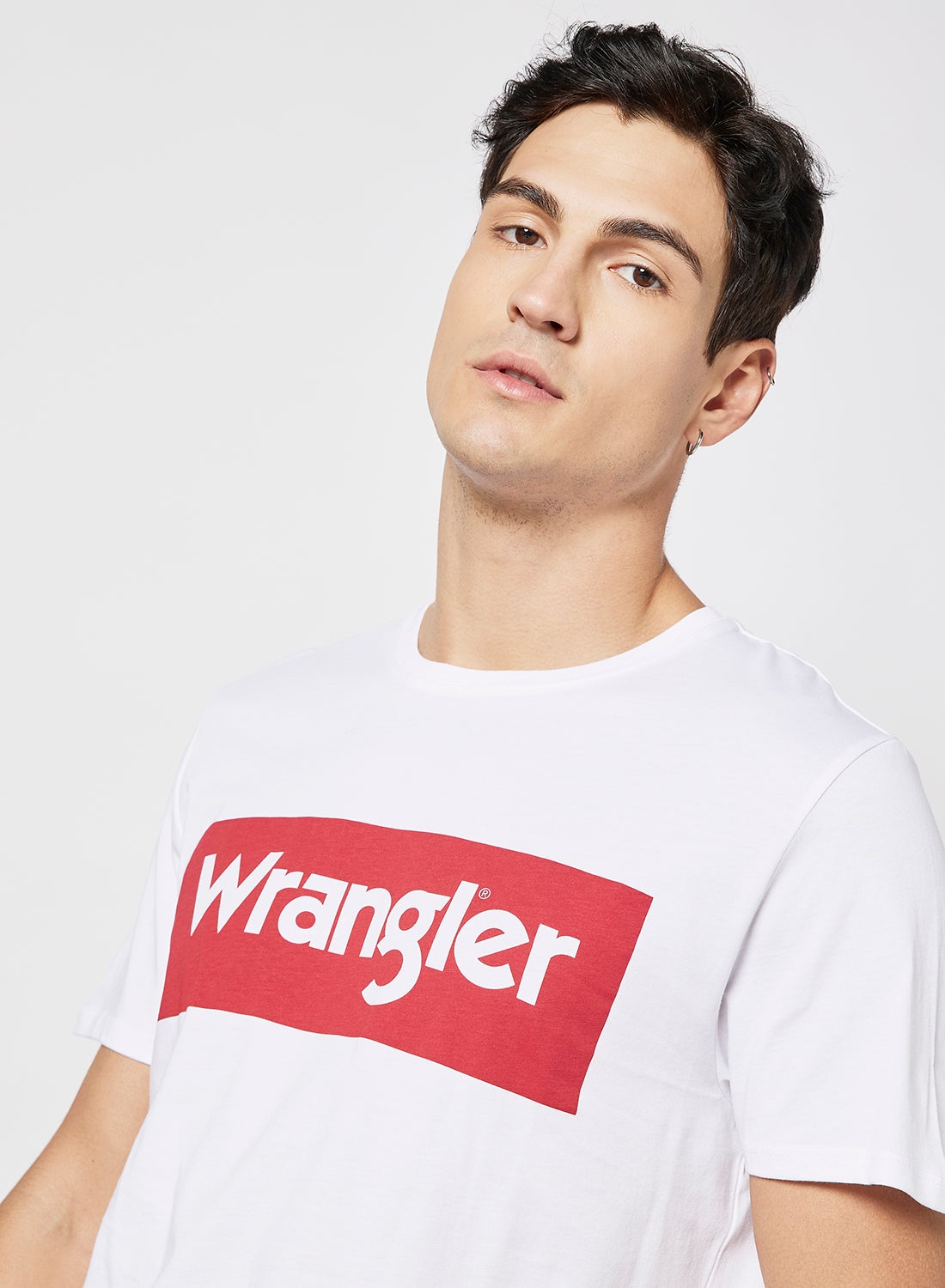 This product features a crew neck and short sleeves, made from soft and comfortable organic cotton fabric. It has a regular fit that provides comfort, and showcases the Wrangler signature front logo. To maintain its quality, please follow the care label instructions when washing.