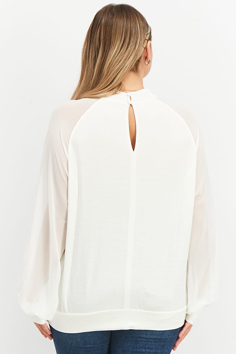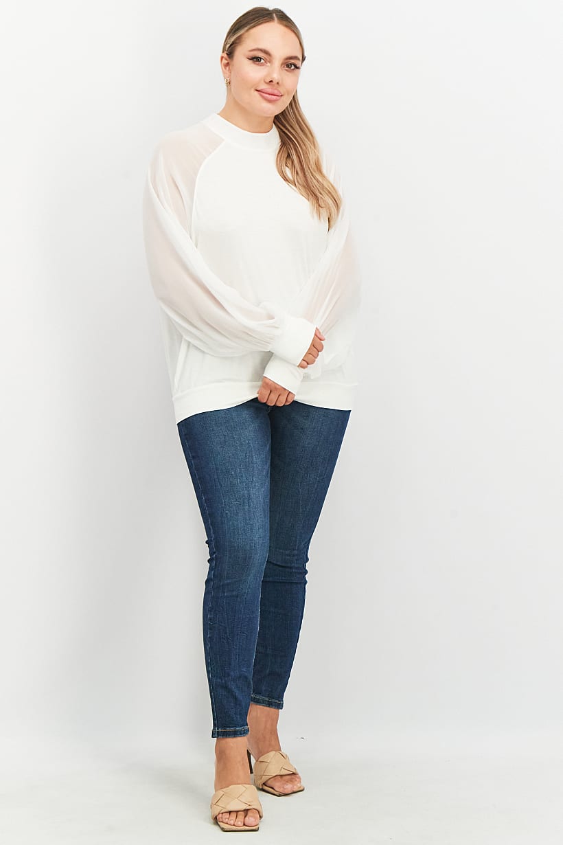 | nameOriginal | Women Mock Neck Long Sleeve Plain Top, White |