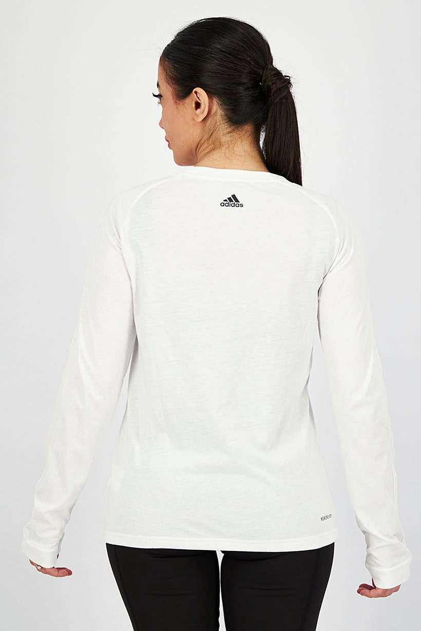 Care : Machine washable, Fit : Sportswear Fit, Size shown : International, Sleeve Length : Long Sleeve, Thickness : Light, Type of Neckline & Collar : Crew neckline , Type of Sport : Running, Disclaimer : Product color may slightly vary due to photographic lighting sources or your monitor settings., Fabrics : 65% Polyester, 35% Cotton, Pattern & Print : Textured pattern, Sportswear Type : Tops, Types of Closures : Pullover, Color Family : White,