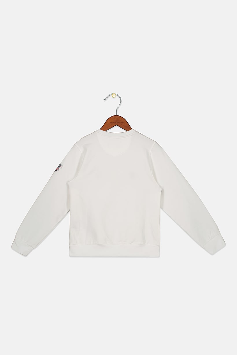| descriptionOriginal | Care : Machine washable, Ideal For : Boys, Sleeve Length : Long Sleeve, Type of Hem : Straight hem , Type of Neckline & Collar : Round neckline , Disclaimer : Product color may slightly vary due to photographic lighting sources or your monitor settings., Fabrics : 95% Cotton, 5% Elastane, Occasion : Casual, Pattern & Print : Brand Logo, Type of Sleeve : Long sleeve , Types of Closures : Pullover, Color Family : White, |