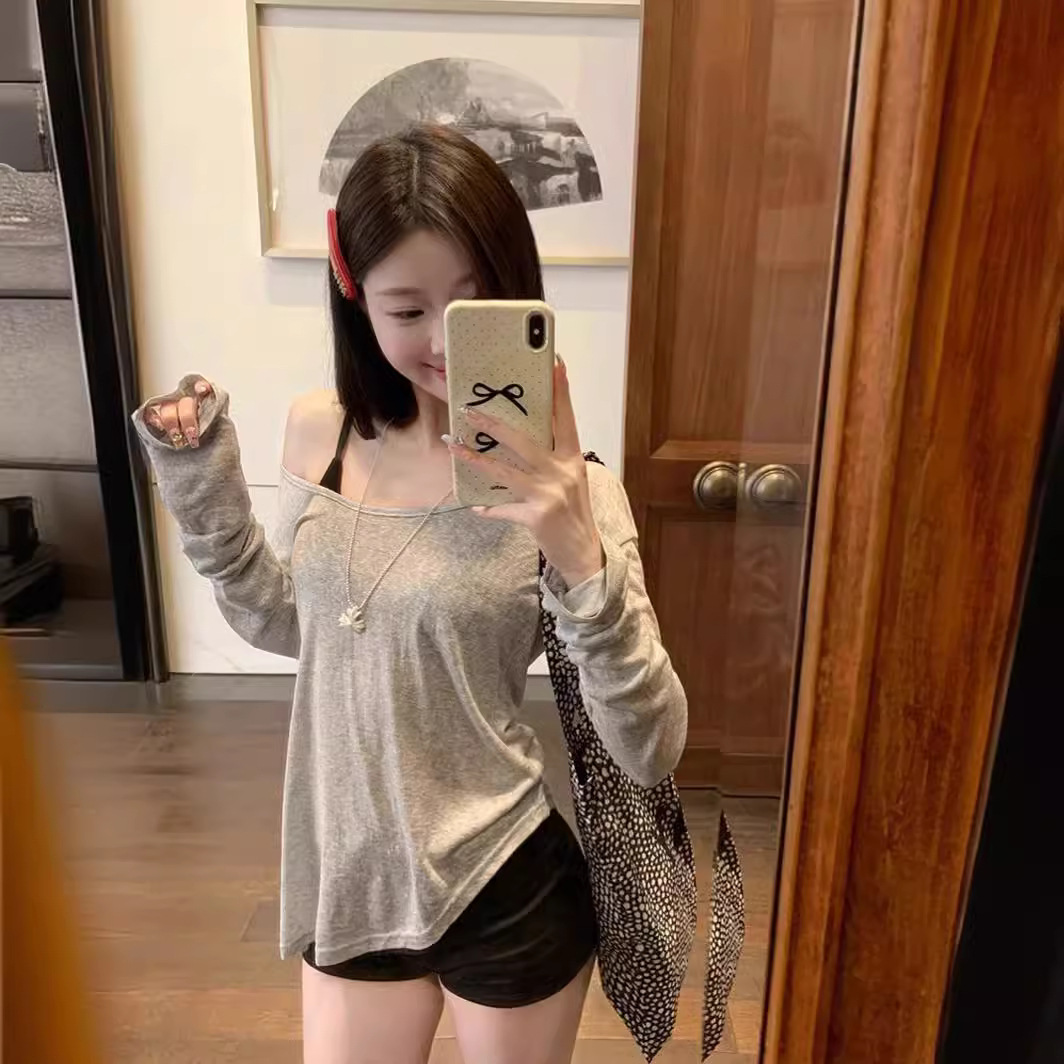 | nameOriginal | White Long-sleeved Air Conditioning T-shirt Women's Summer Design Sense Niche Off-shoulder Thin Sunscreen Blouse Pure Split Top |