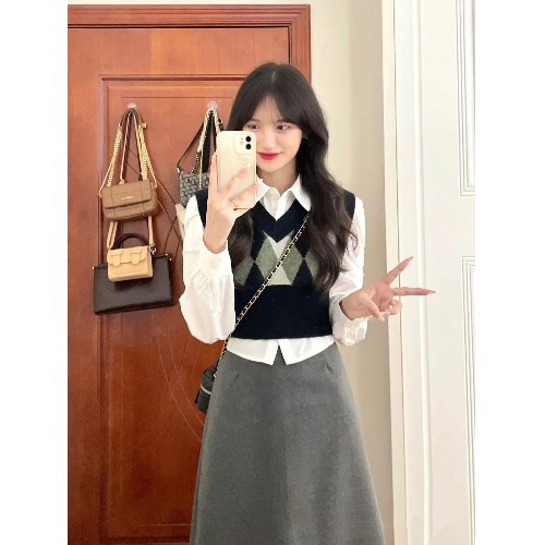 White Long-sleeved Shirt Women’s Two-piece Vest Autumn 2024 New French Style Chic Stacked Top
