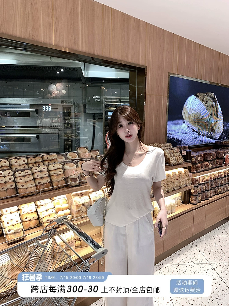 | nameOriginal | White low-neck slightly see-through casual simple short-sleeved T-shirt |