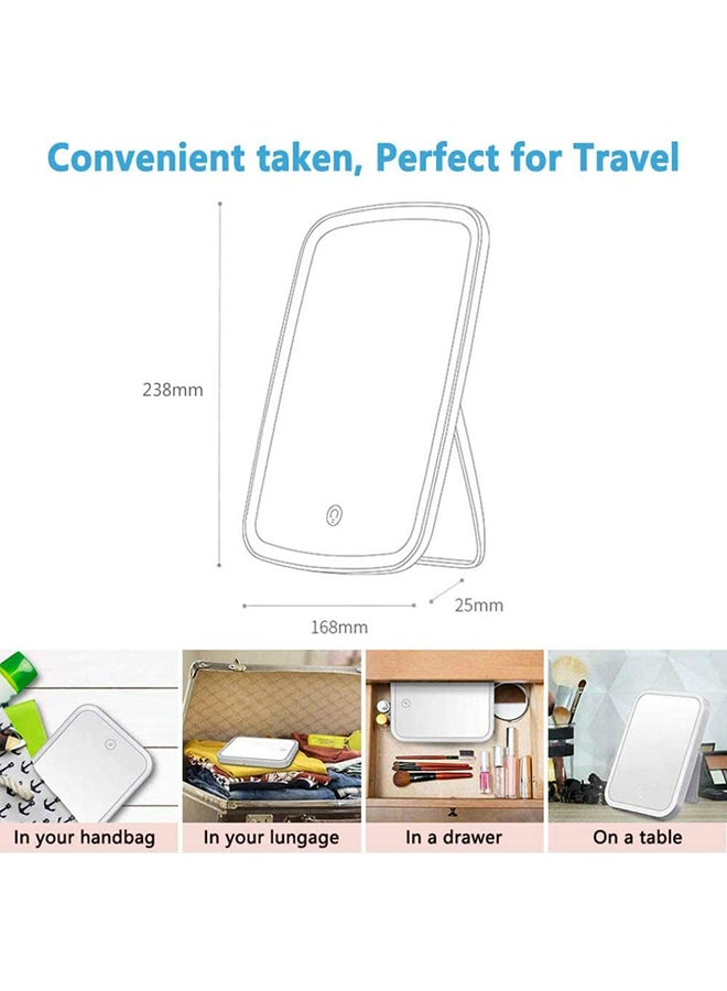The USB Rechargeable Makeup Mirror With Light White is the perfect addition to your beauty routine. This sleek and stylish mirror features bright LED lights that provide optimal lighting for flawless makeup application. The mirror is rechargeable via USB, making it convenient and easy to use on-the-go. The compact size of the mirror makes it perfect for travel or for use in small spaces. The white finish adds a touch of elegance to any vanity or bathroom. With its high-quality construction and practical features, this makeup mirror is a must-have for any beauty enthusiast.