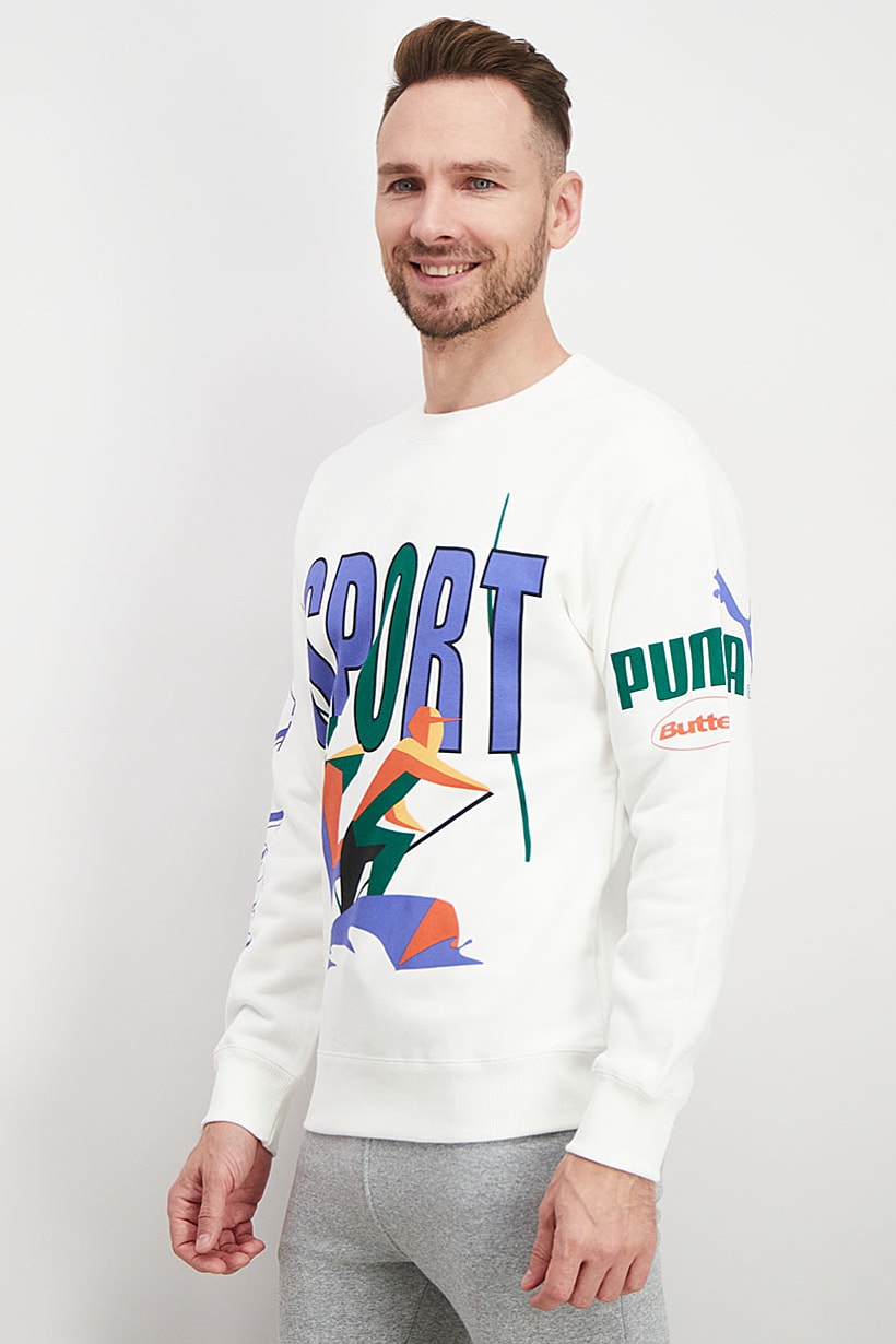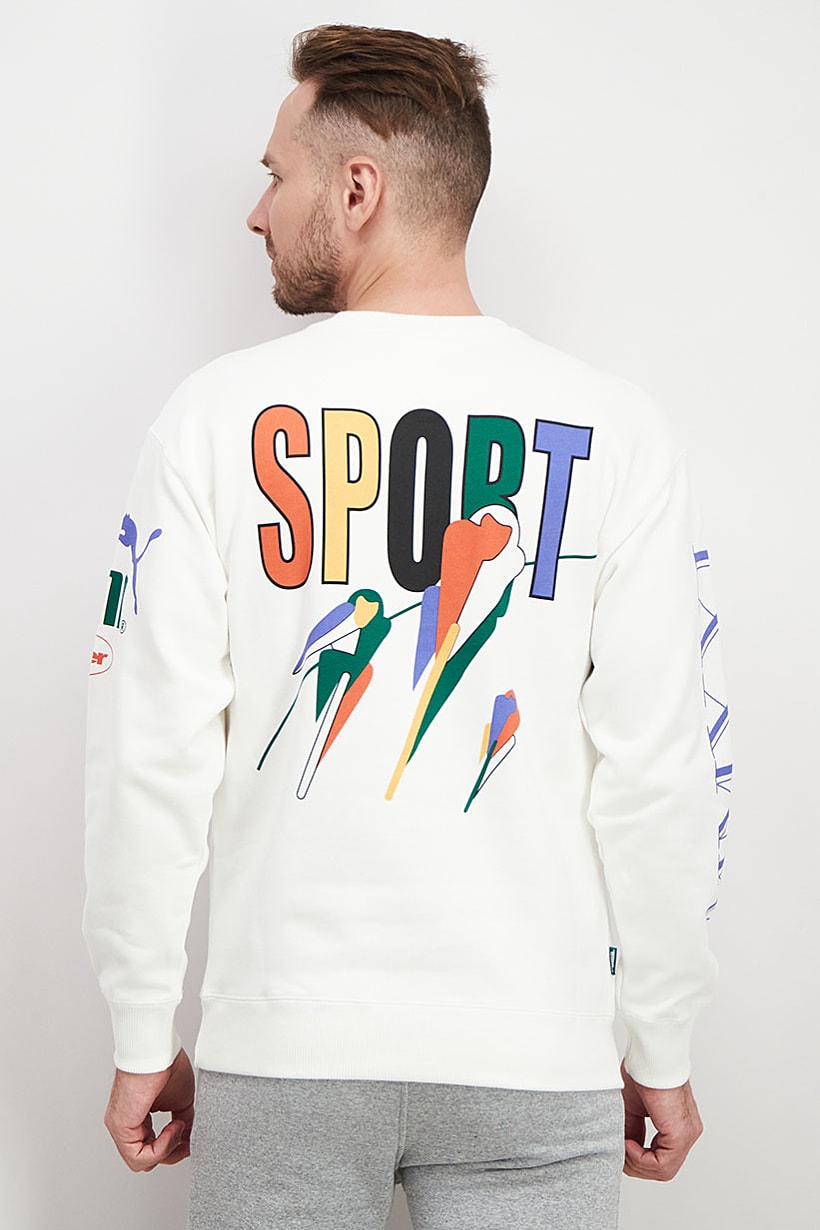 Care : Machine washable, Size shown : International, Sleeve Length : Long Sleeve, Thickness : Light, Type of Neckline & Collar : Crew neckline , Disclaimer : Product color may slightly vary due to photographic lighting sources or your monitor settings., Fabrics : 100% Cotton, Pattern & Print : Brand Logo, Types of Closures : Pullover, Color Family : White, Fit : Sportswear Fit, Sportswear Type : Sweatshirts, Type of Sport : Outdoors,