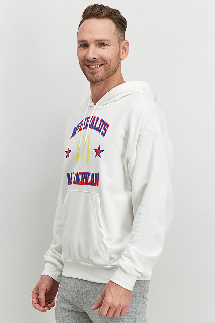 Bottom Hem : Straight, Care : Machine washable, Fit : Sportswear Fit, Size shown : US, Sleeve Length : Long Sleeve, Thickness : Light, Type of Neckline & Collar : Hood with drawstrings , Type of Sport : Outdoors, Disclaimer : Product color may slightly vary due to photographic lighting sources or your monitor settings., Fabrics : 52% Cotton, 48% Polyester, Pattern & Print : Graphic print, Embroidered logo, Sportswear Type : Hoodies, Types of Closures : Pullover, Color Family : White,