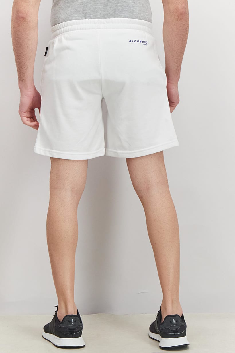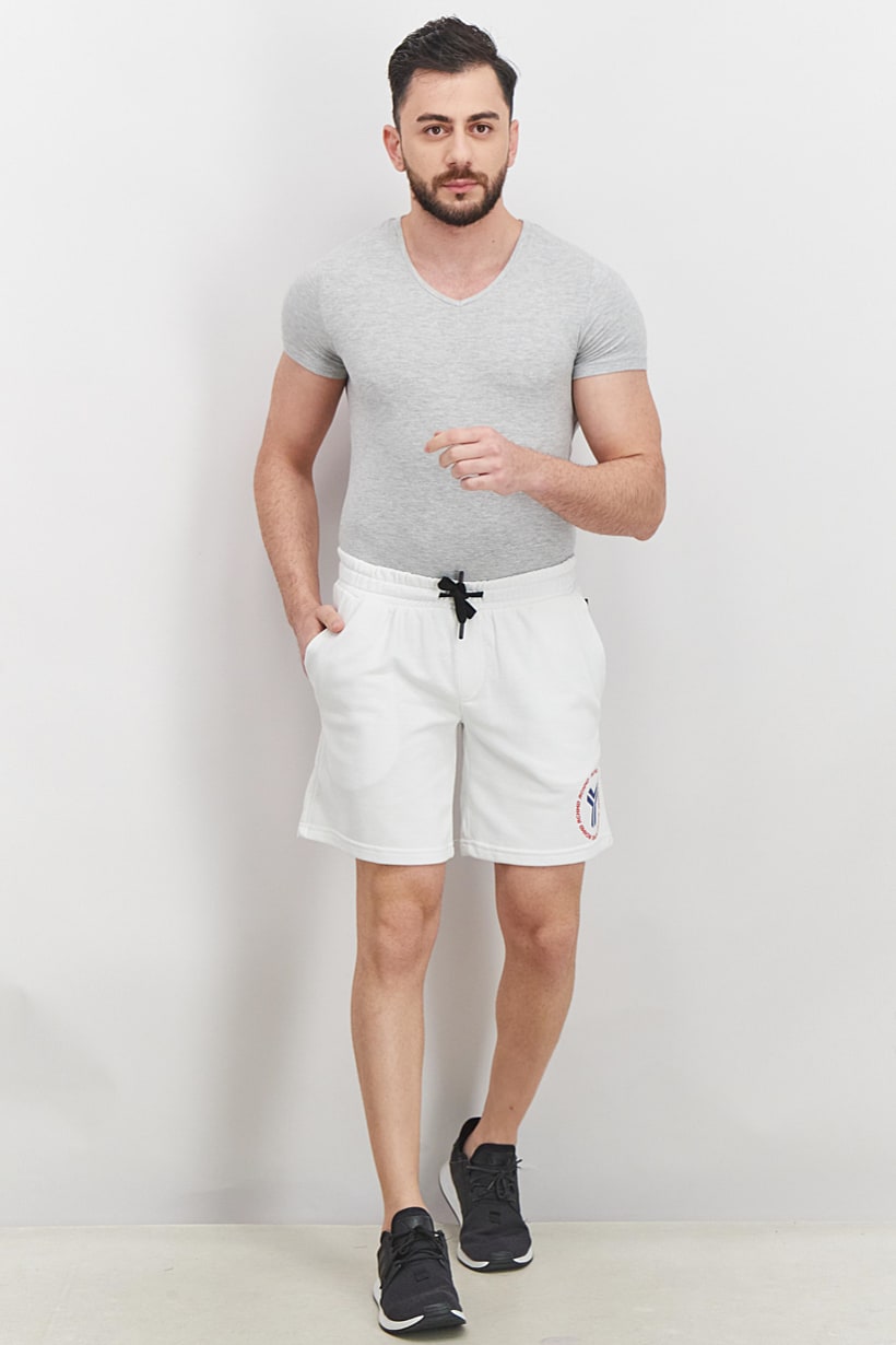 White Men’s Sportswear Shorts with Brand Logo and Drawstring.