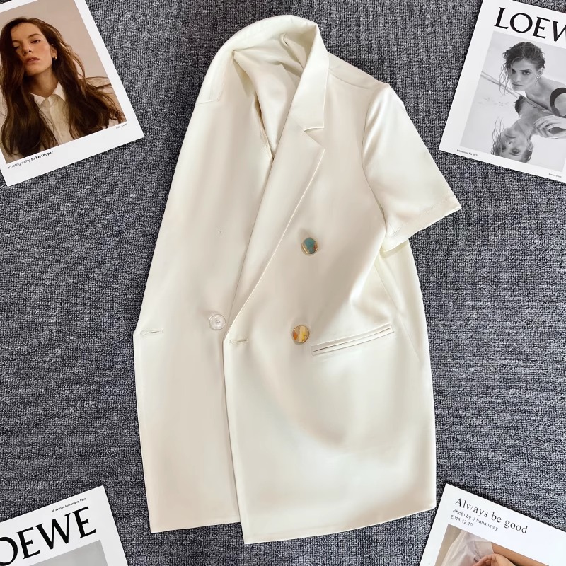 | nameOriginal | White metal buckle suit jacket for women 2023 Summer thin new British style design short sleeve suit for women |