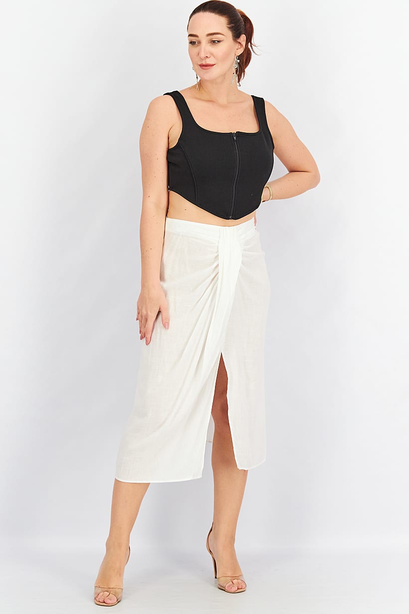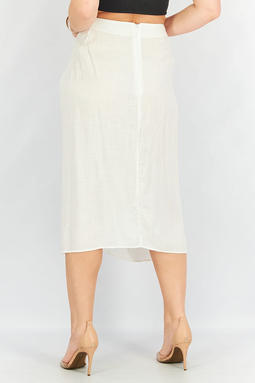 | descriptionOriginal | Bottom Hem : Straight, Care : Machine washable, Fit : Regular fit, Size shown : US, Type of Skirt : Midi skirt, Bottom Closure : Concealed zipper, Bottom Style/Pattern : No Pocket, Disclaimer : Product color may slightly vary due to photographic lighting sources or your monitor settings., Fabrics : 100% Viscose, Occasion : Casual, Pattern & Print : Plain/Solid, Color Family : White, |