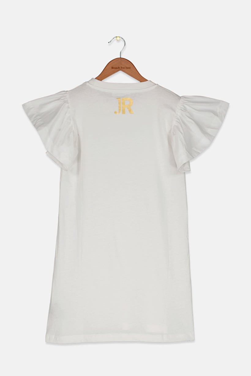 | sub_Categories | Girls Fashion, Girls Dresses, kids girl ruffle sleeve embroidered brand logo midi dress white |