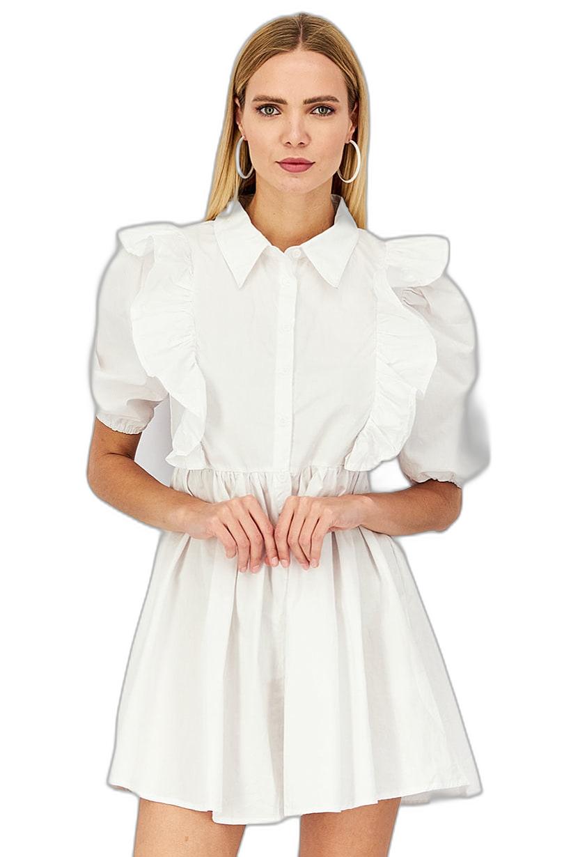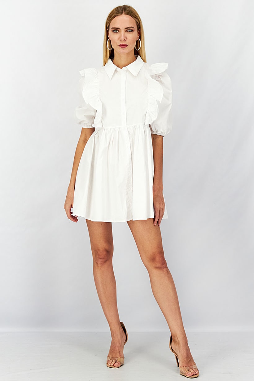 | sub_Categories | Women Clothing, Dresses, women poplin puffed sleeve plain mini dress white |