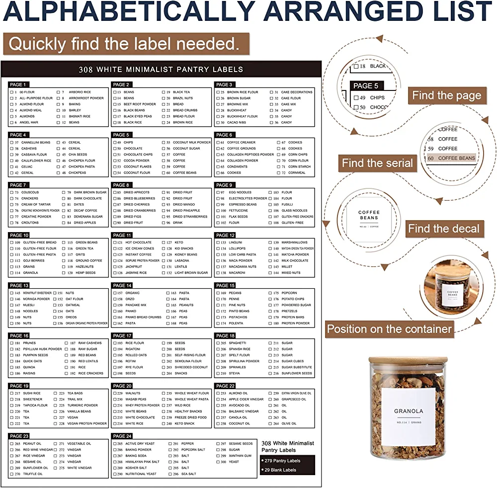 | nameOriginal | 308 Kitchen Pantry Labels for Food Containers, 3 Sizes White Minimalist Labels for Organizing, Food Labels for Jars, Storage Bins, Preprinted Waterproof Pantry Labels for Containers |