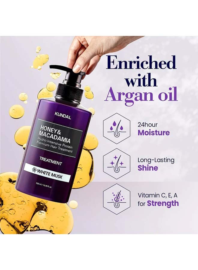 Say goodbye to dry, damaged hair and hello to healthy, beautiful locks with our Honey and Macadamia Hydro-Intensive Protein Premium Hair Treatment in White Musk fragrance.