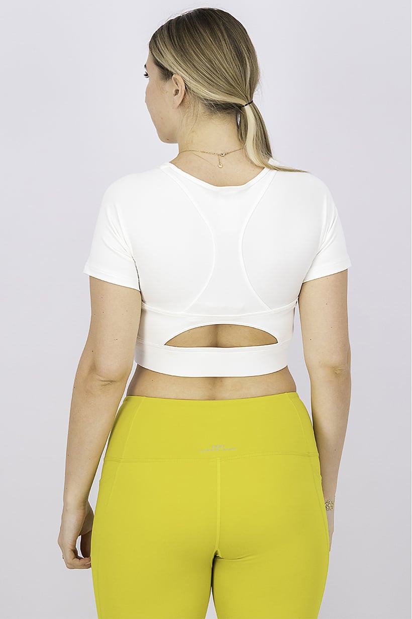 This product can be easily washed in a machine and is designed to fit snugly for sports activities. The size displayed is in US measurements and the material is lightweight with a composition of 90% Polyamide and 10% Elastane. It is suitable for outdoor sports and features a brand logo pattern. Please note that the color of the product may differ slightly due to lighting or monitor settings. This is a white top categorized as sportswear.