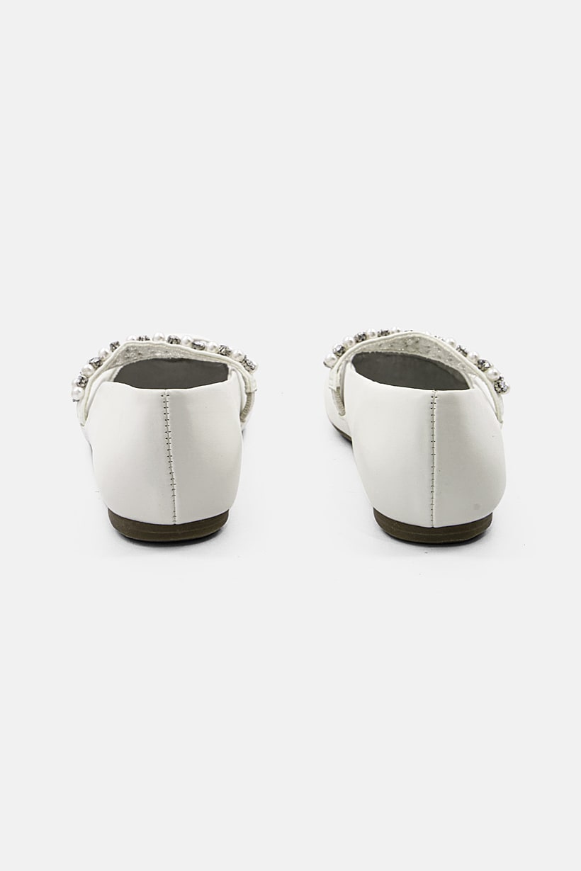 This product features a slip-on style shoe with a round toe design, made from synthetic leather material and a synthetic sole. It is ideal for casual occasions and is available in a white color. Please note that the product color may slightly vary due to photographic lighting sources or monitor settings. This product is suitable for girls and comes with no character.