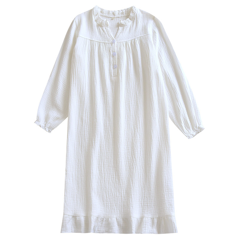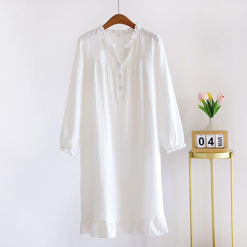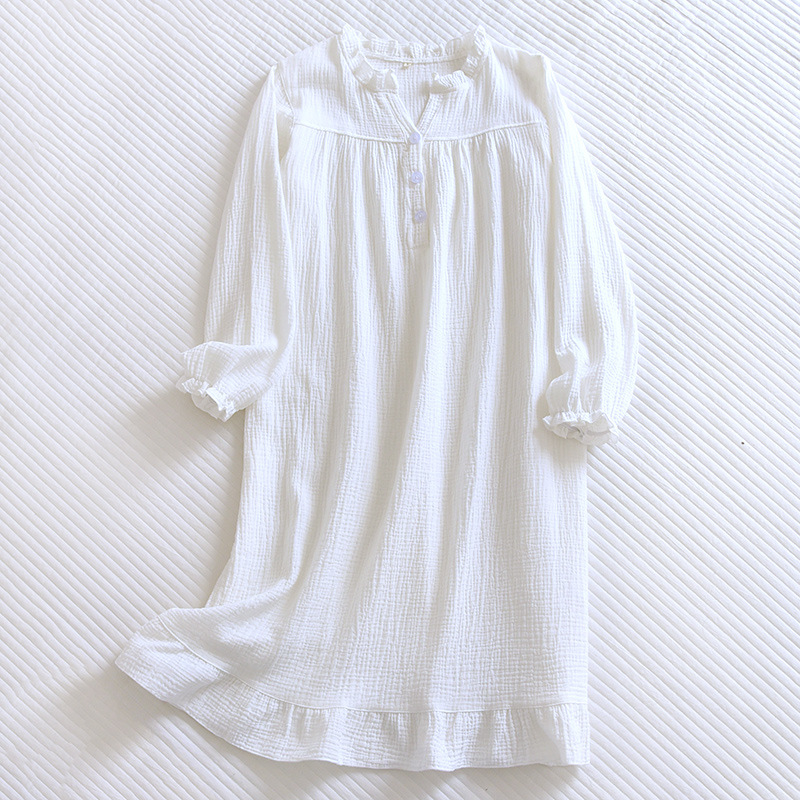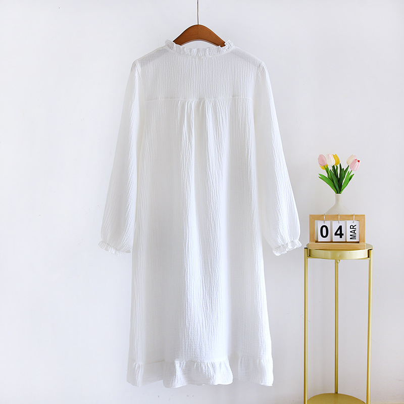 | nameOriginal | White Nightgown Crepe Cotton Dress Spring and Autumn Long-sleeved Women's Loose Mid-length Dress Cotton Princess Dress Home Clothes |