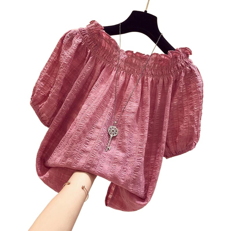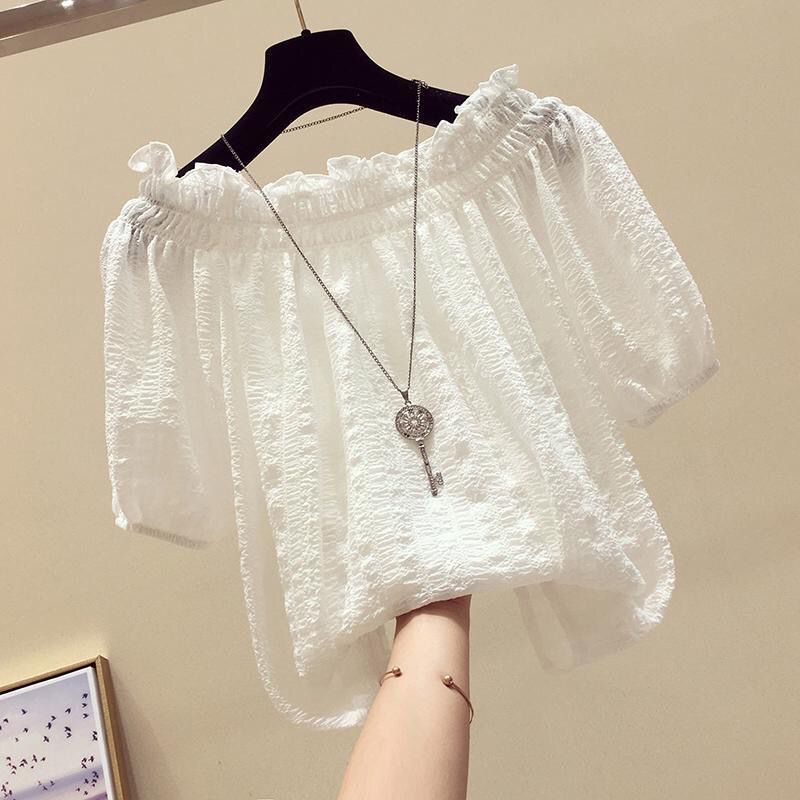 | nameOriginal | White Off-shoulder Chiffon Shirt Women's Short-sleeved 2024 New Summer Korean Style Loose Pleated Stylike Pullover Top |