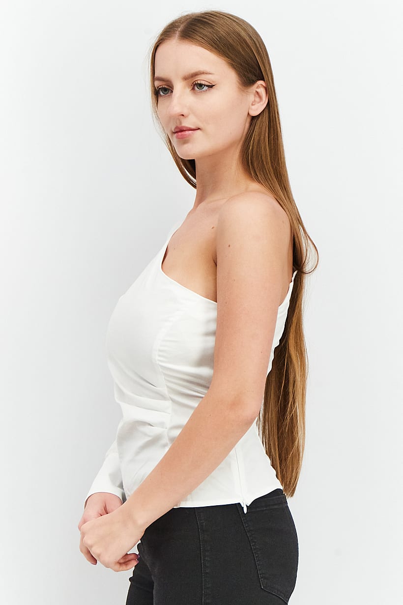 | nameOriginal | Women Asymmetrical Neckline One Shoulder Solid Tops, White |