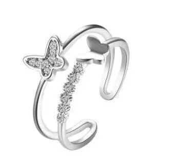 White open butterfly ring inlaid with diamonds