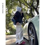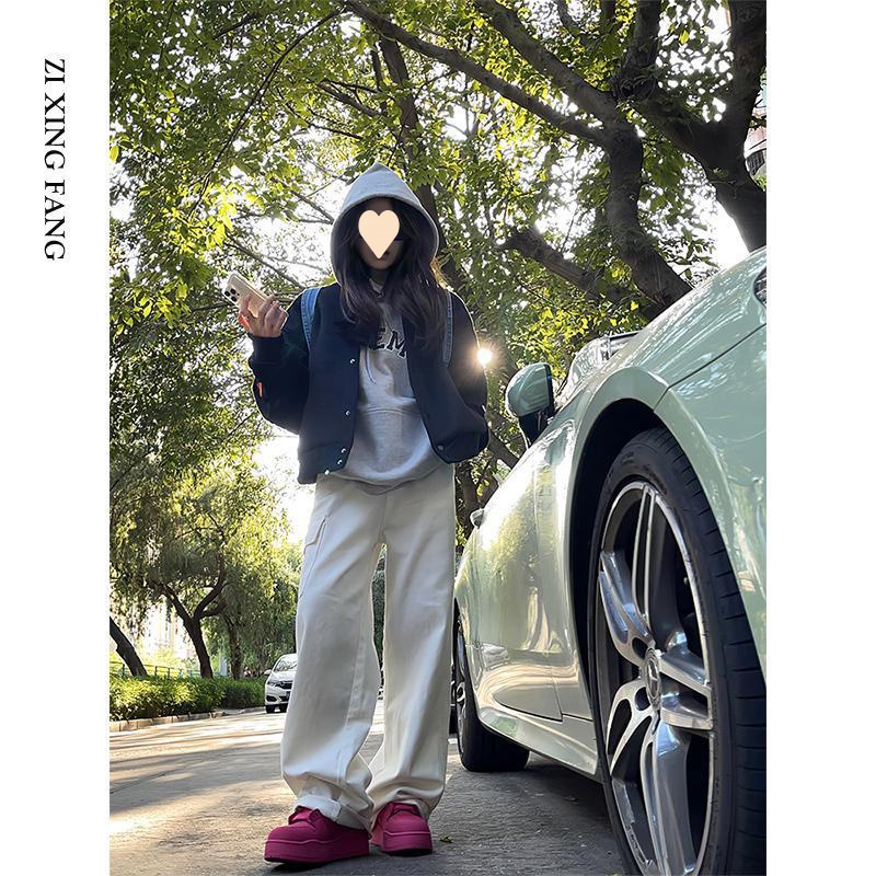White overalls women’s autumn 2023 new high waist draping loose slimming casual mopping wide leg pants