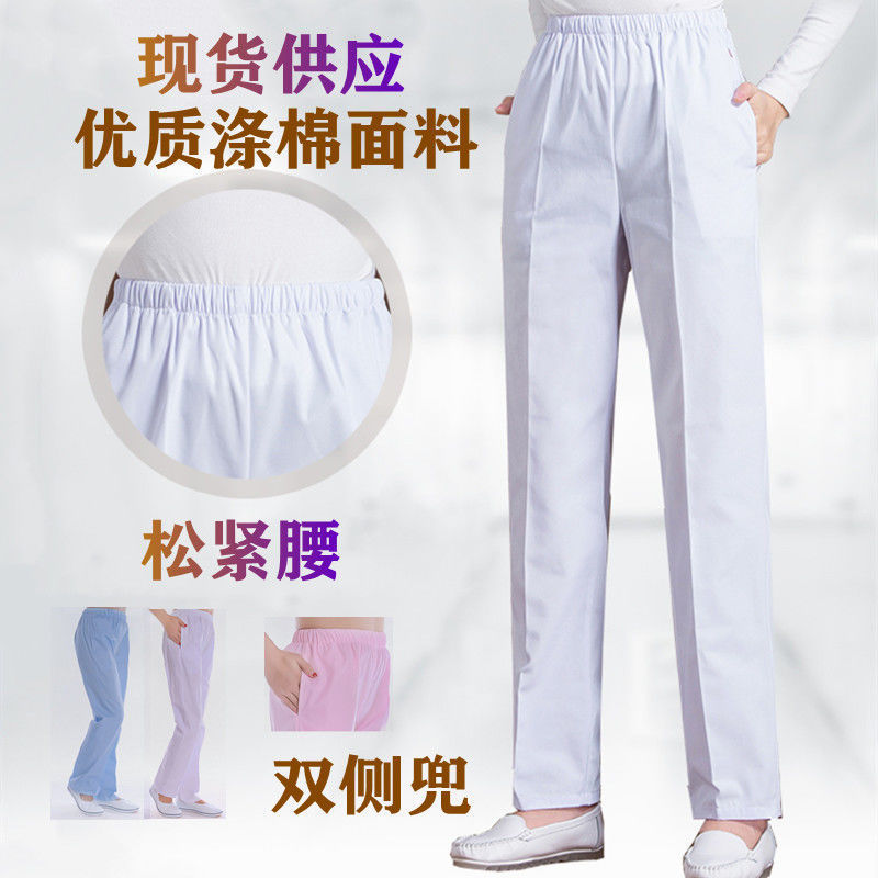 White pants nurse pants elastic waist doctor work pants shop hospital white doctor uniform winter and summer elastic waist pants