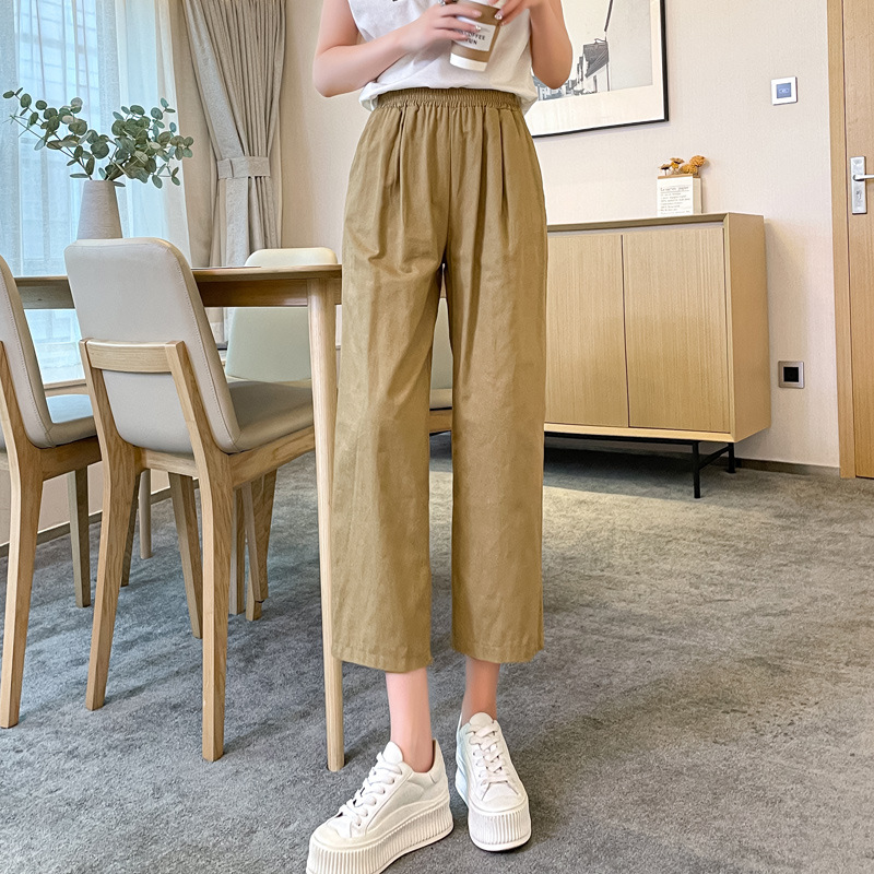 White Pants Women's Summer Thin Small Eight-point Straight-leg Pants Loose Slimming High Waist Dagging Nine-point Wide-leg Pants