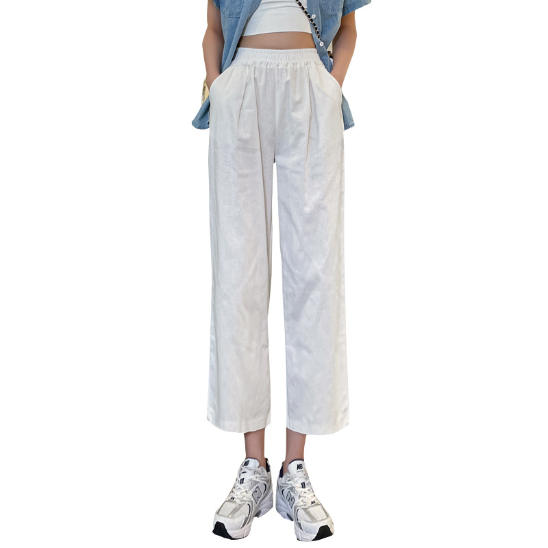 White Pants Women’s Summer Thin Small Eight-point Straight-leg Pants Loose Slimming High Waist Dagging Nine-point Wide-leg Pants