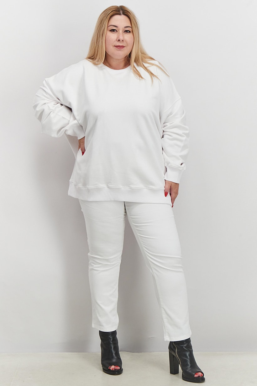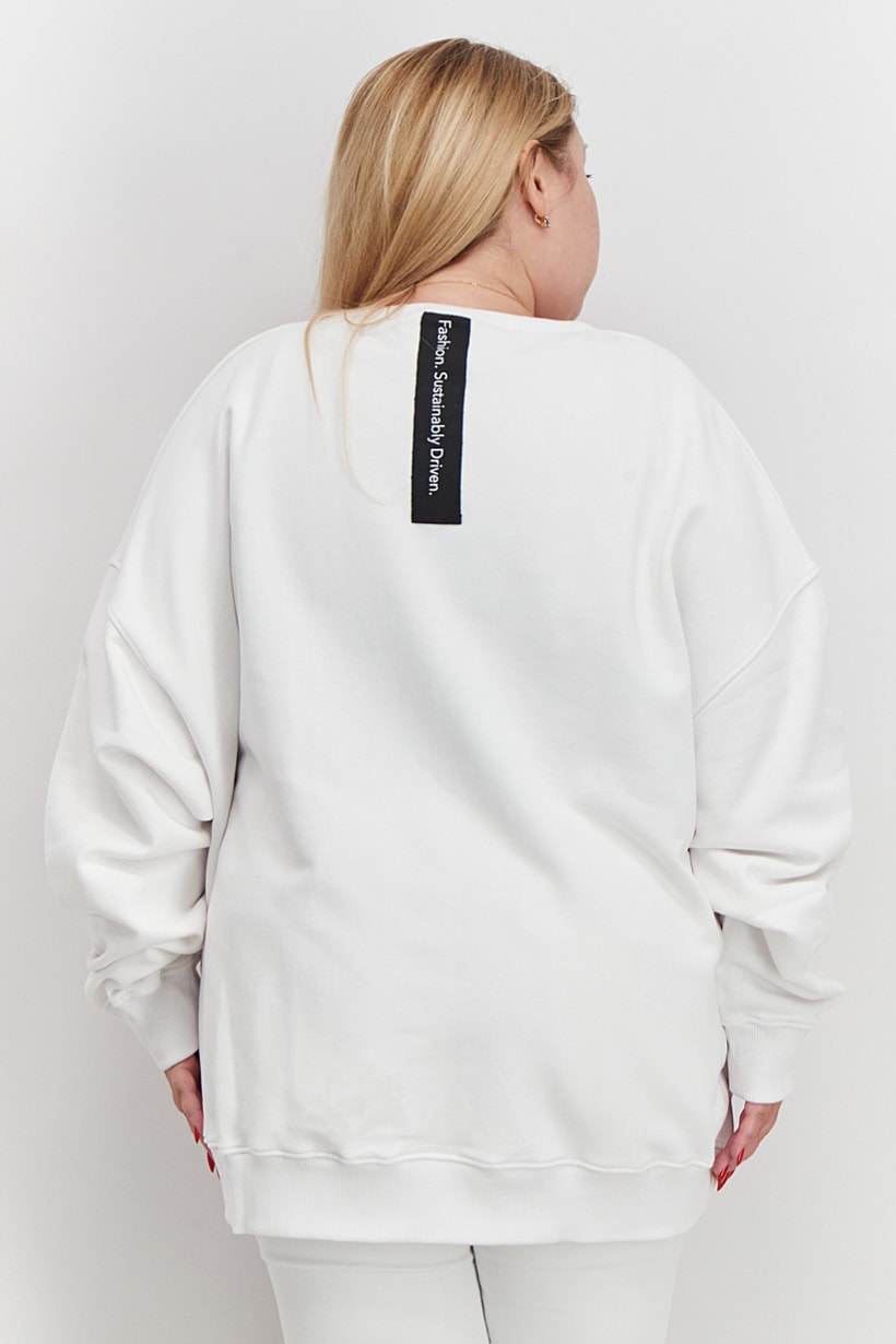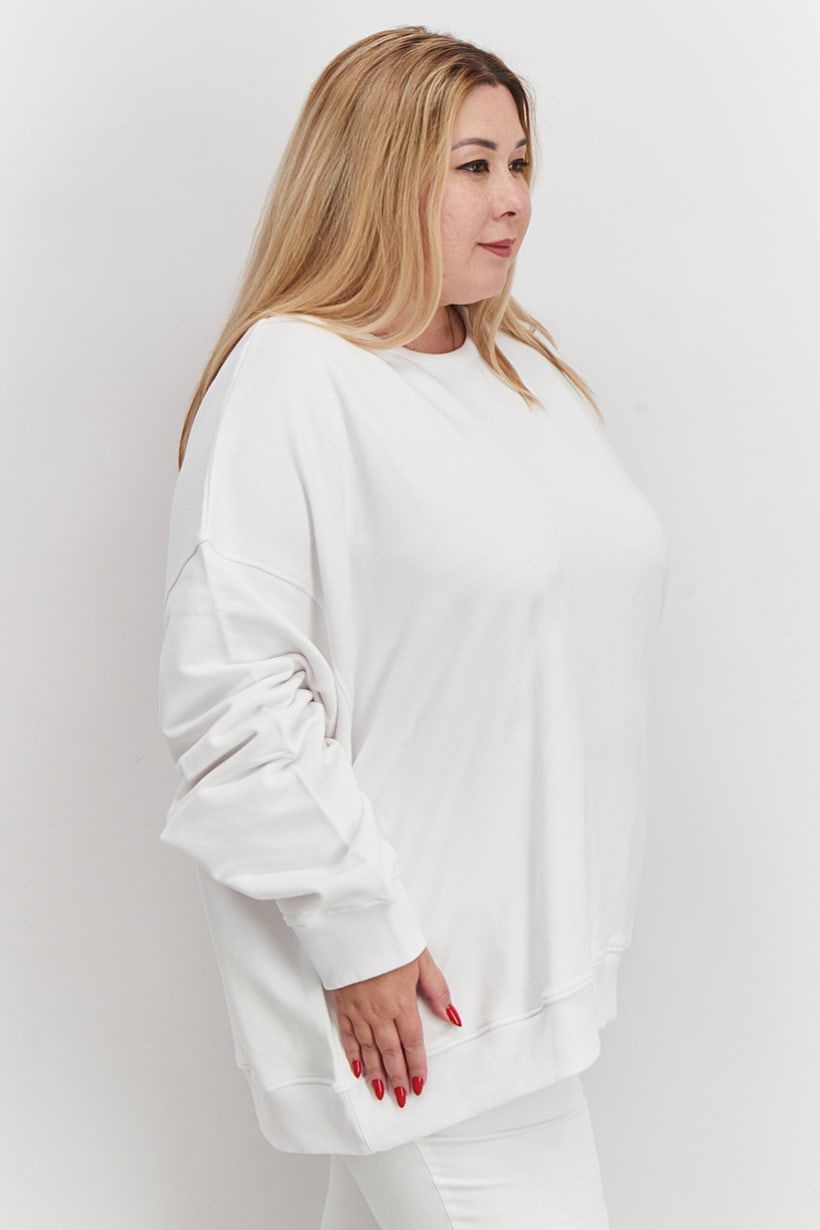 White Plus Size Crew Neck Sweatshirt for Women with Long Sleeves.