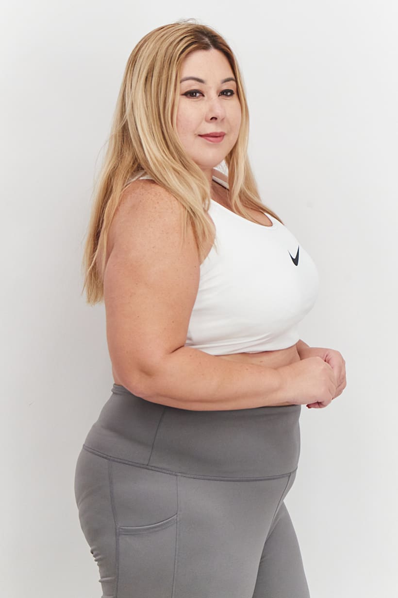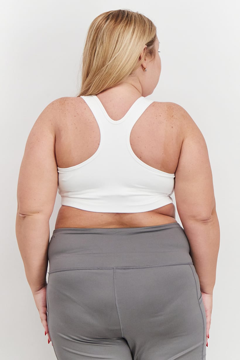 White Plus Size Sports Bra with Dri-Fit Support and No Padding.