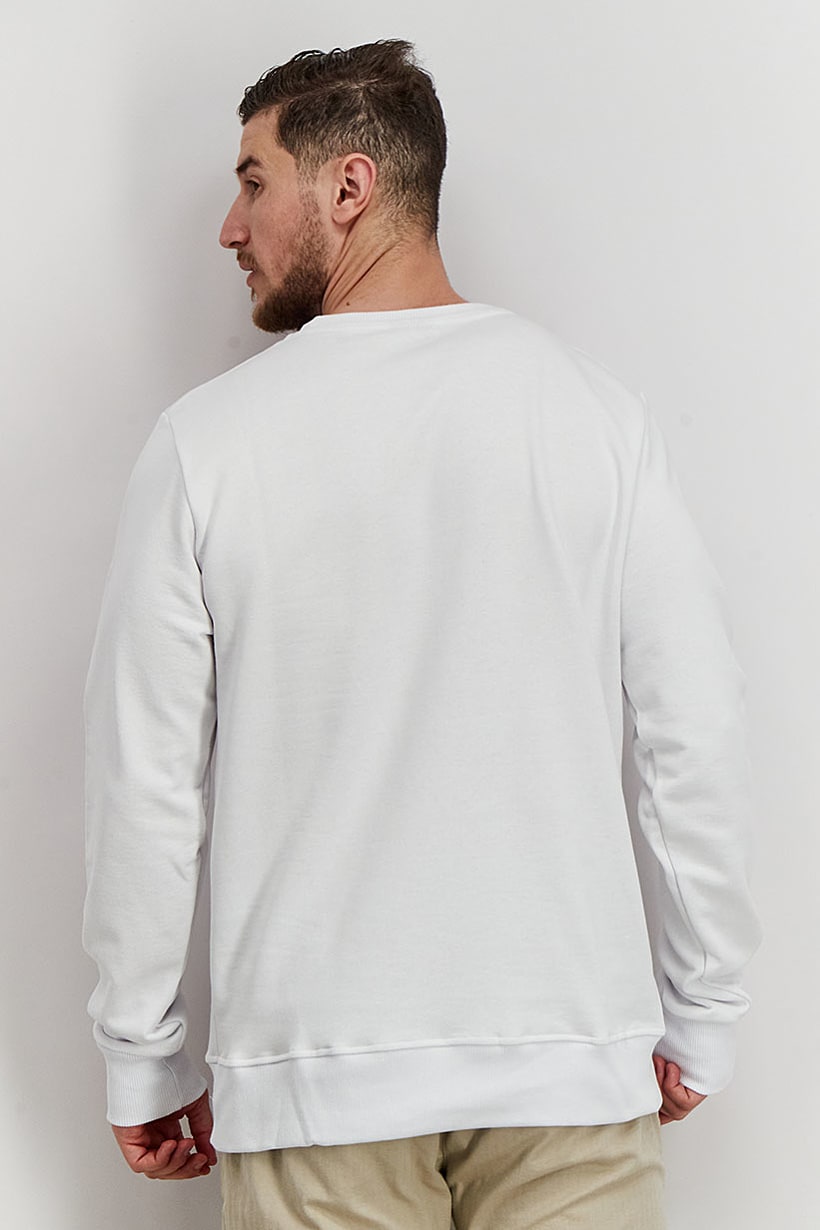 White Printed Men’s Long Sleeve Crew Neck Sweatshirt.