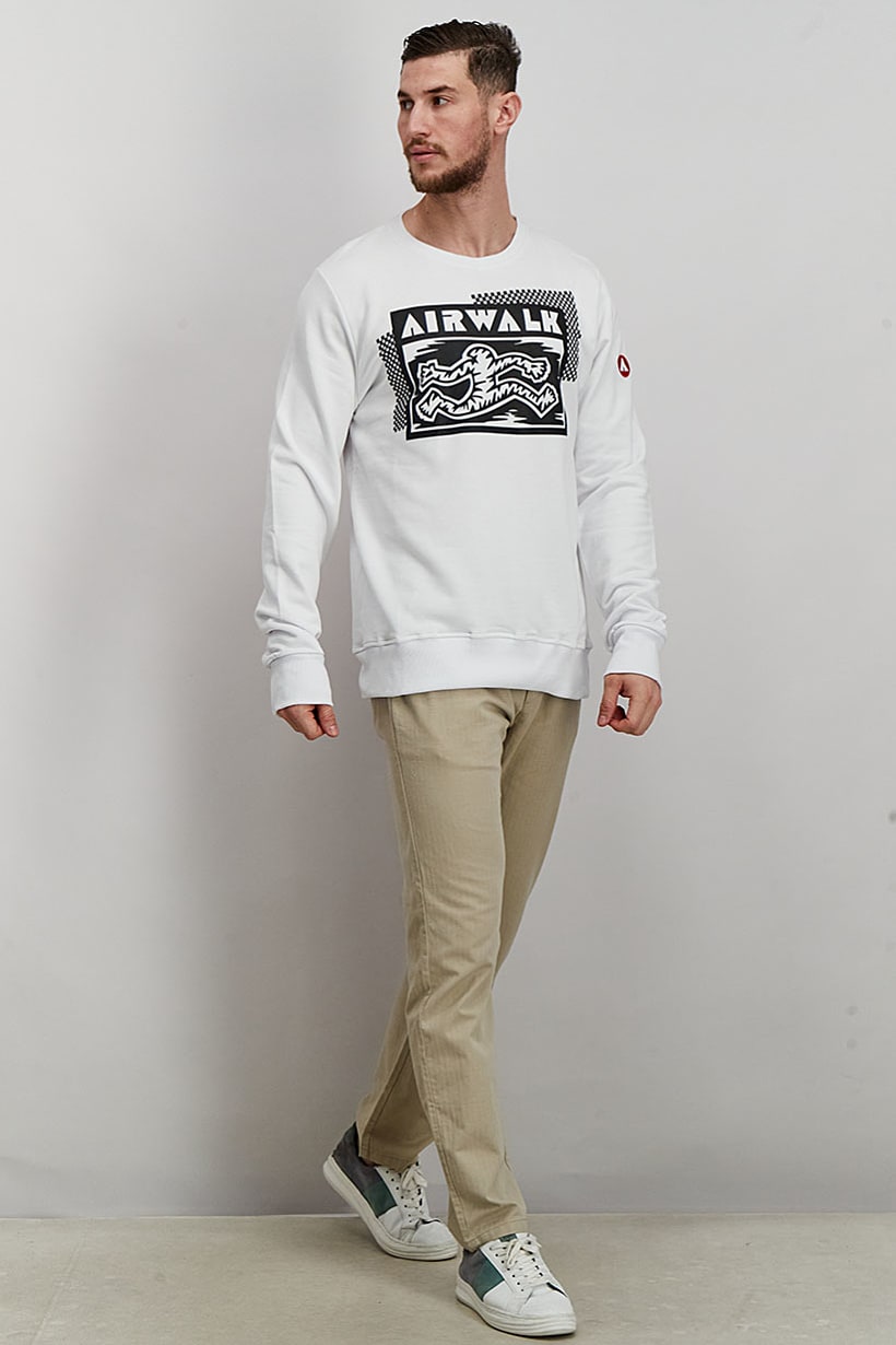 Care : Machine washable, Size shown : International, Sleeve Length : Long Sleeve, Sweatshirt Style : Crew Neck, Thickness : Medium, Type of Neckline & Collar : Crew neckline , Disclaimer : Product color may slightly vary due to photographic lighting sources or your monitor settings., Fabrics : 80% Cotton, 20% Polyester, Pattern & Print : Graphic print, Types of Closures : Pullover, Color Family : White,