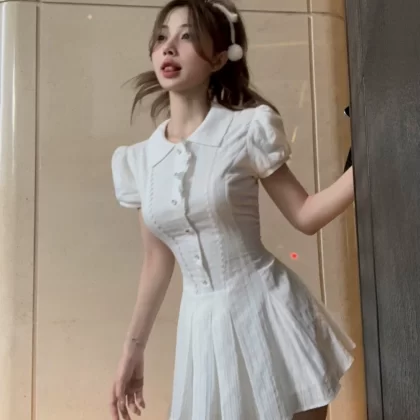 | nameOriginal | White puff sleeve shirt dress for women summer French chic short-sleeved skirt waist A-line skirt pleated skirt |