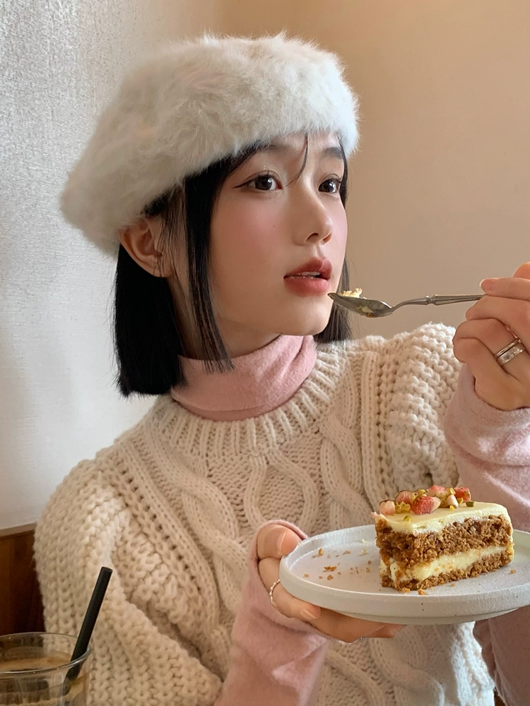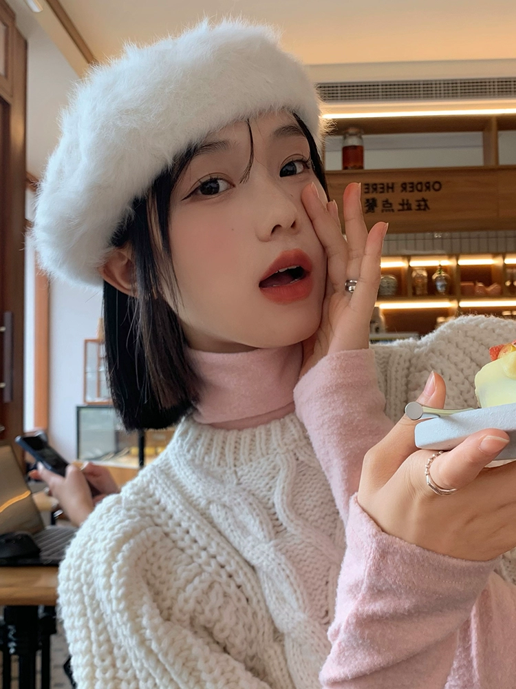 | nameOriginal | White rabbit fur beret for women in autumn and winter, Korean style face-showing small plush bud painter's hat, Japanese style big head circumference hat |