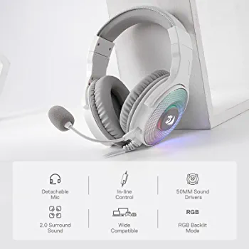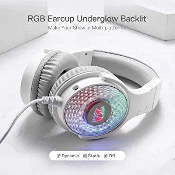 White Redragon Pandora Gaming Headset with Virtual 7.1 Surround Sound and RGB Lighting.