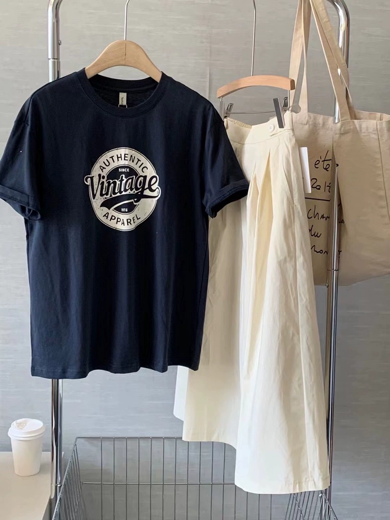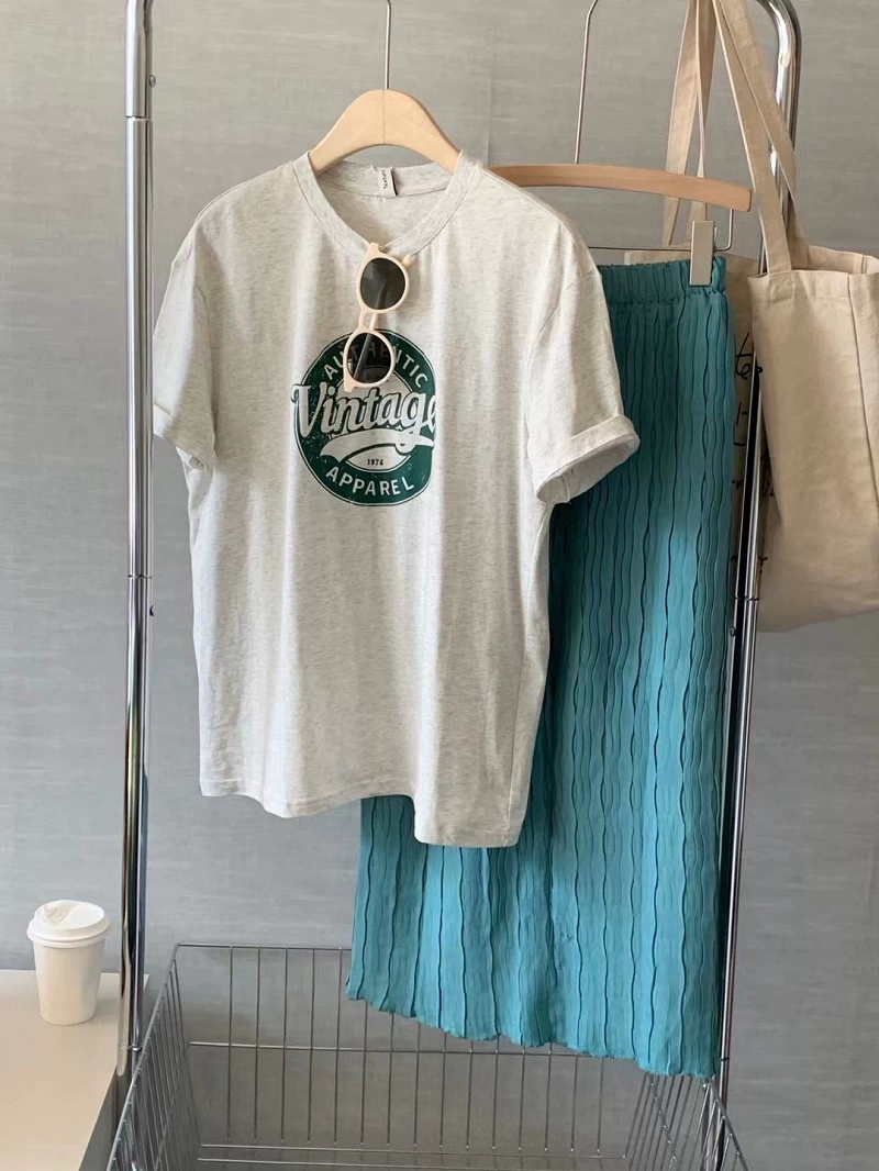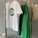 | nameOriginal | White retro green printed t-shirt women's short-sleeved 2022 European station new loose European goods large version top ins |
