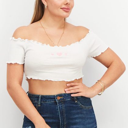 | sub_Categories | Women Clothing, Tops & Tees, women off shoulder short sleeve ribbed top white |