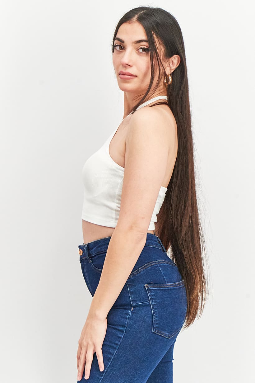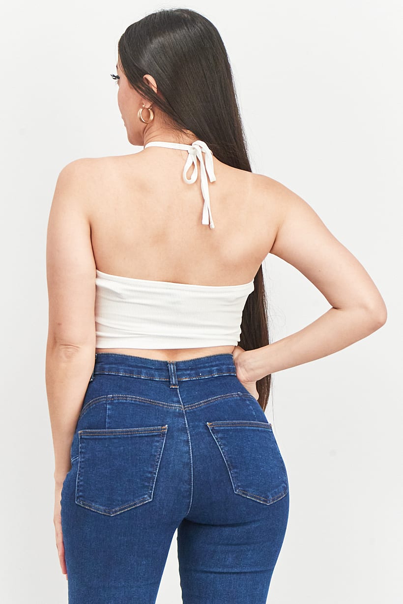 | nameOriginal | Women Halter Neck Sleeveless Ribbed Top, White |