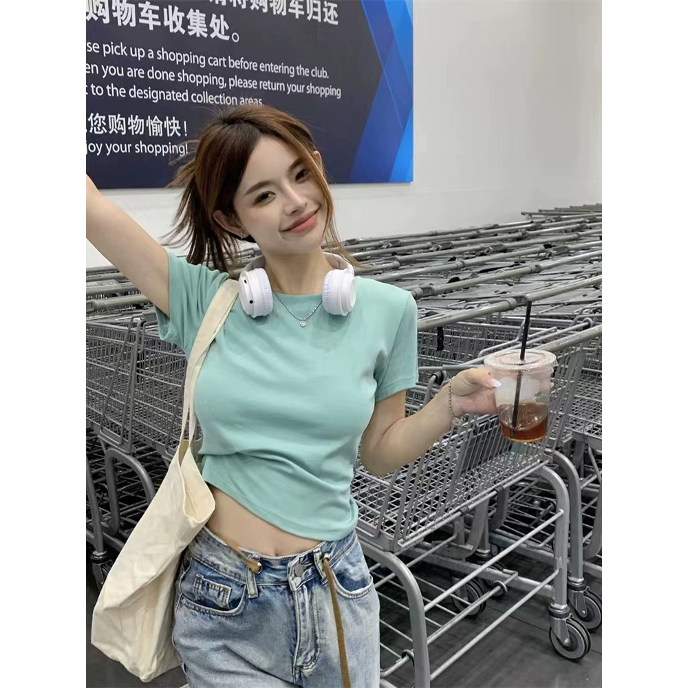 | nameOriginal | White right-shoulder summer slim-fitting top short-sleeved T-shirt |