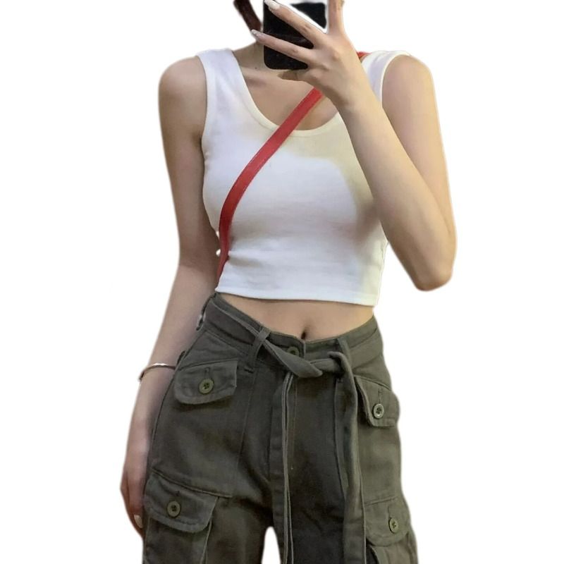 | nameOriginal | White Round Neck Camisole 2024 Summer New Design Sense Niche Inner Navel Spice Girls Short Top |