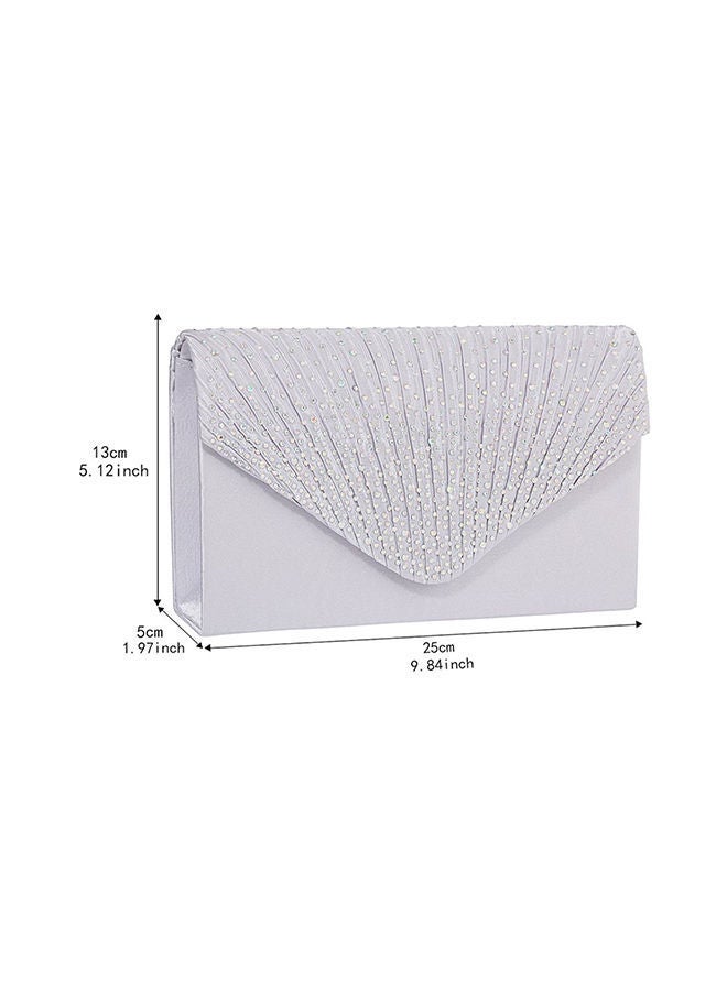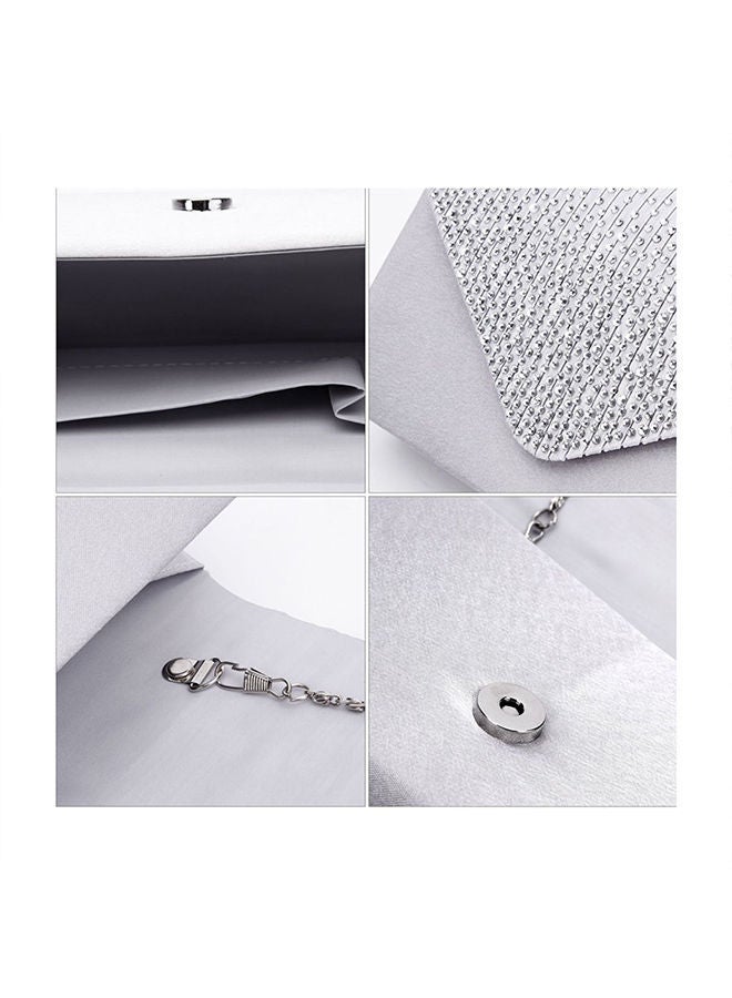The Satin Bridal Diamante Clutch Bag in White is the perfect accessory for any bride on her special day. Made from high-quality satin material, this clutch bag is both elegant and durable. The white color adds a touch of sophistication and matches perfectly with any bridal gown. The bag is adorned with beautiful diamante detailing, adding a touch of sparkle and glamour to your bridal look. The clutch is the perfect size to hold all your essentials, including your phone, lipstick, and other small items. With its sleek and stylish design, this clutch bag is sure to make a statement and complete your bridal look.