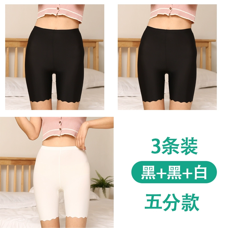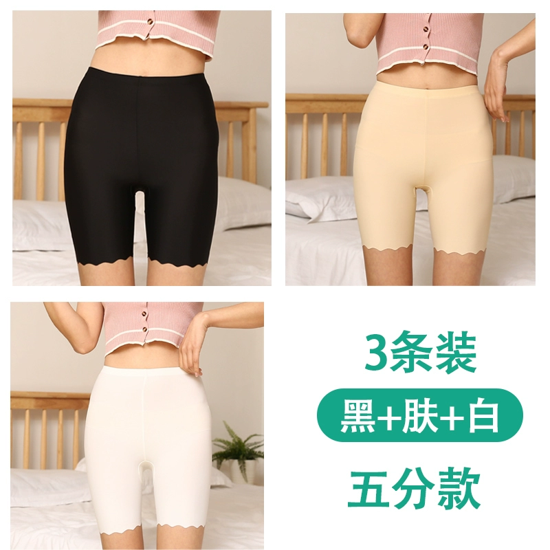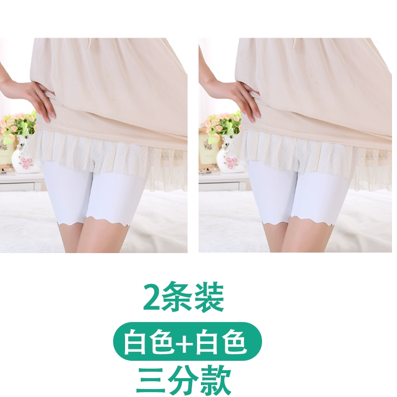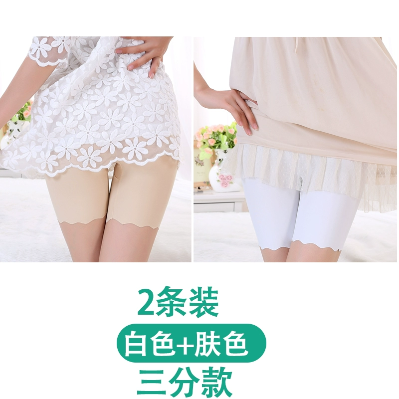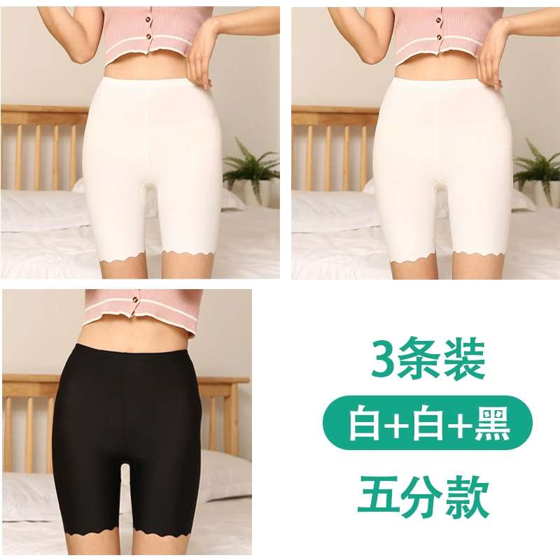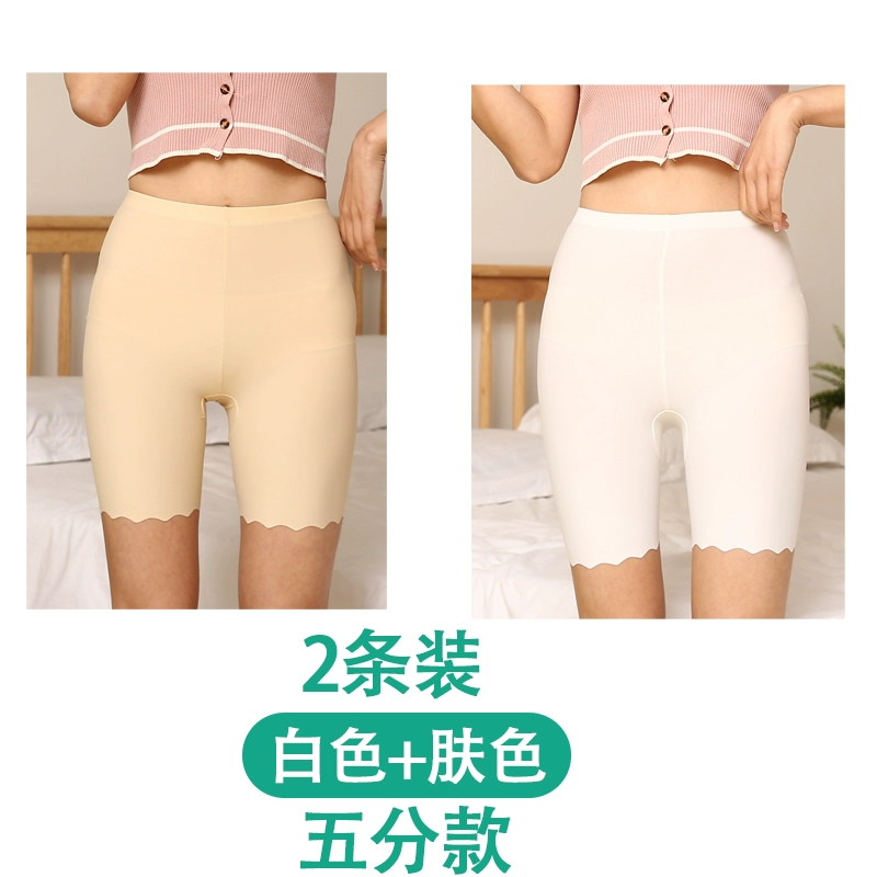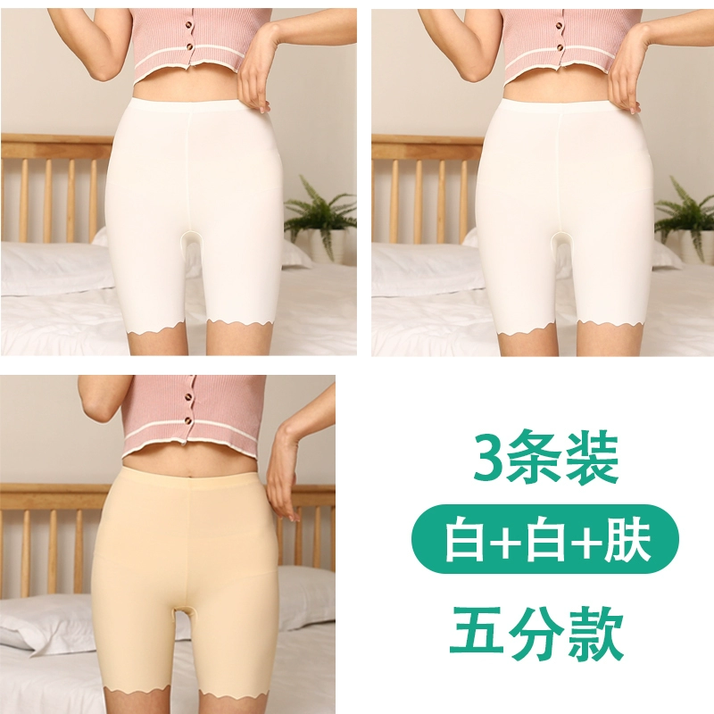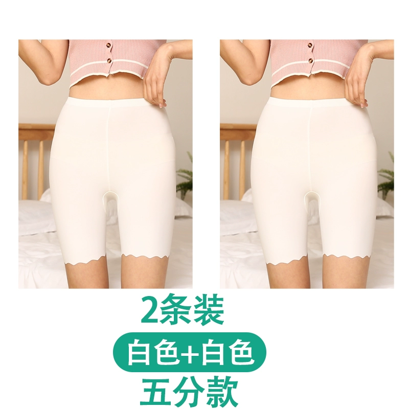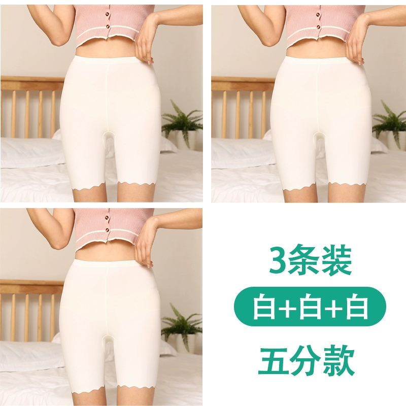 White traceless safety pants for women without rolling edges and anti-exposure summer fat mm large size five-point pants ice silk insurance leggings