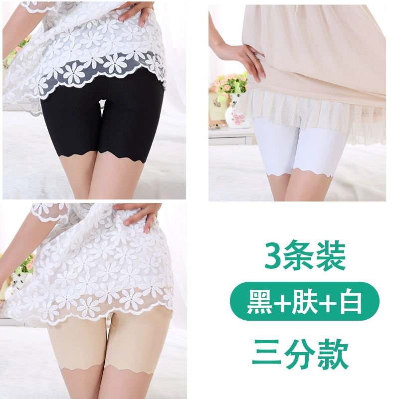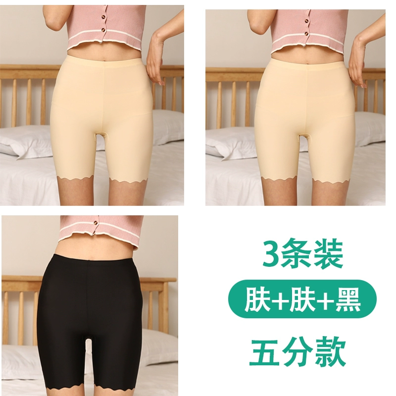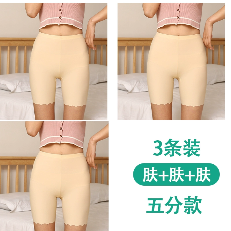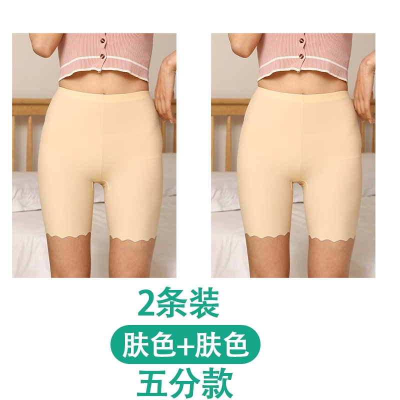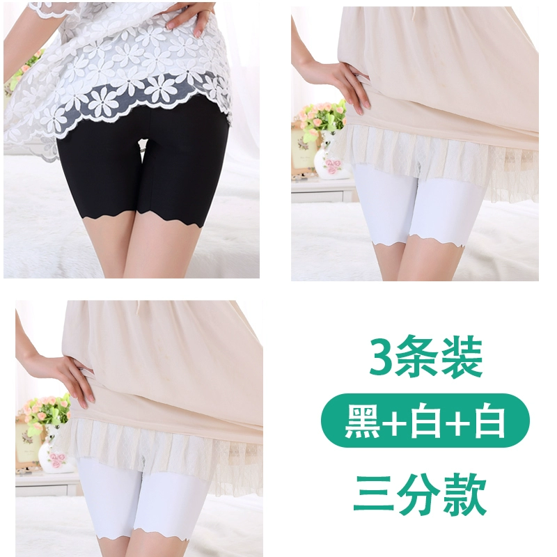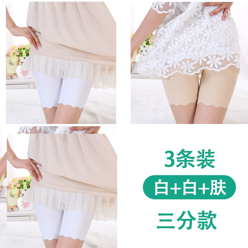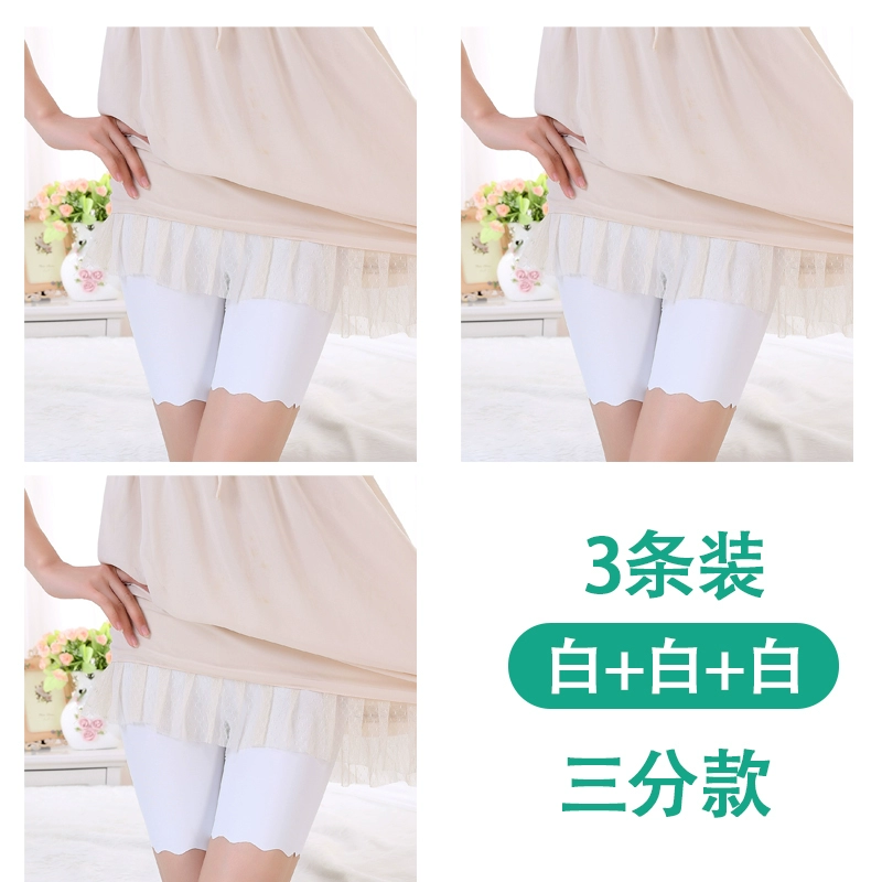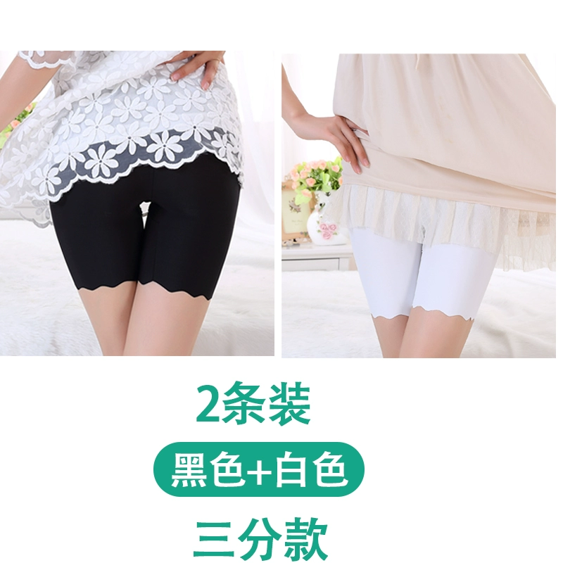 White traceless safety pants for women without rolling edges and anti-exposure summer fat mm large size five-point pants ice silk insurance leggings