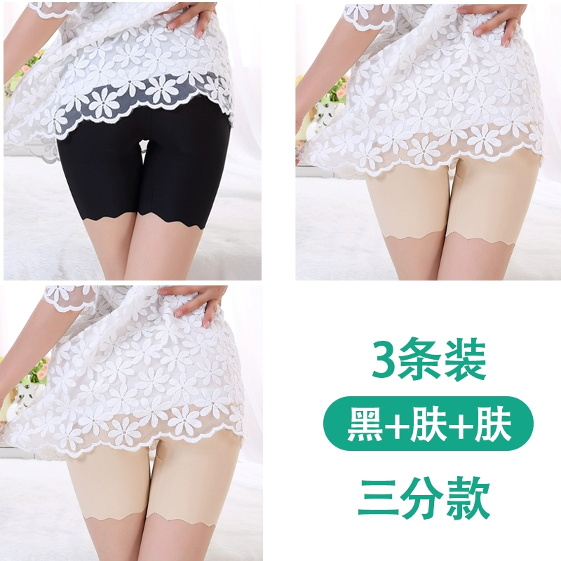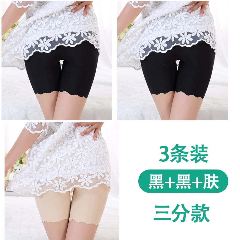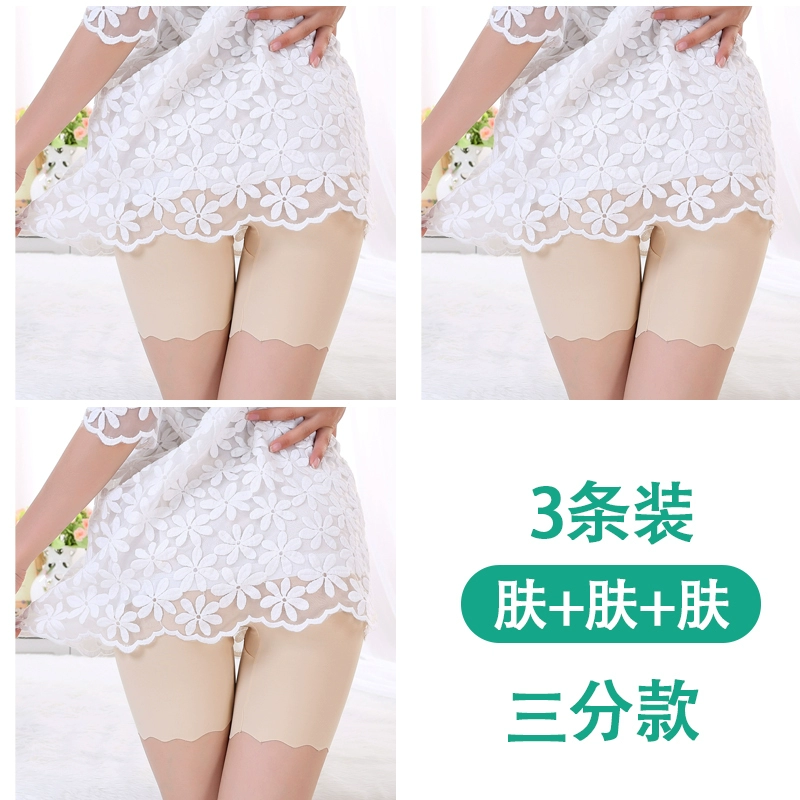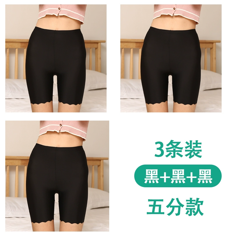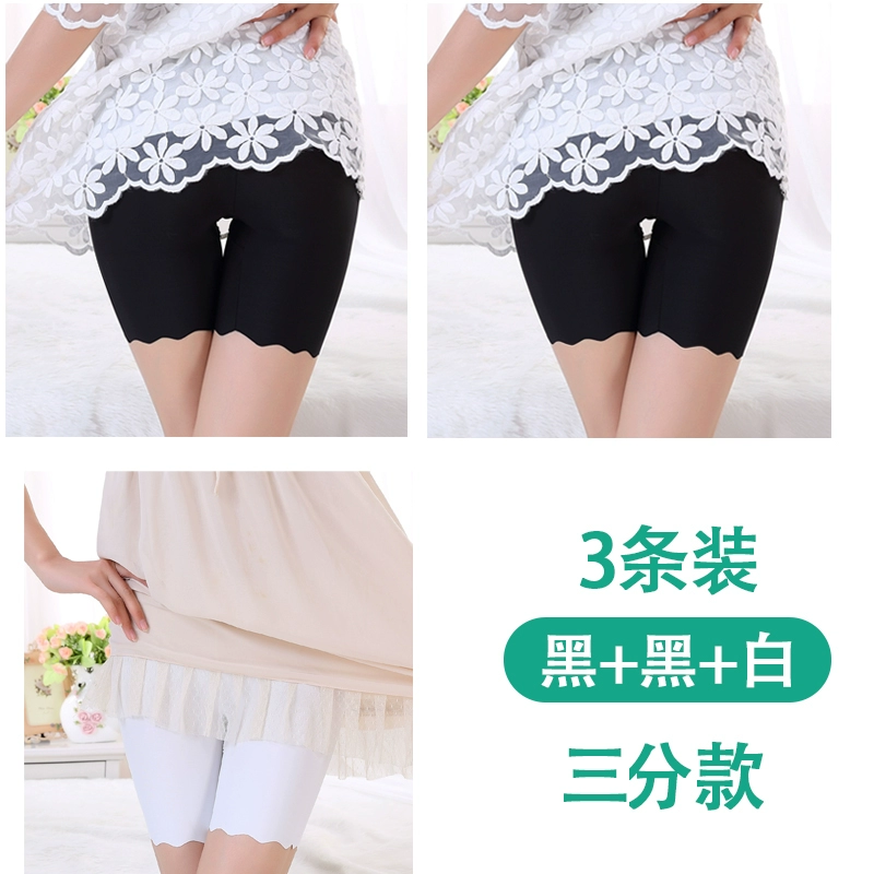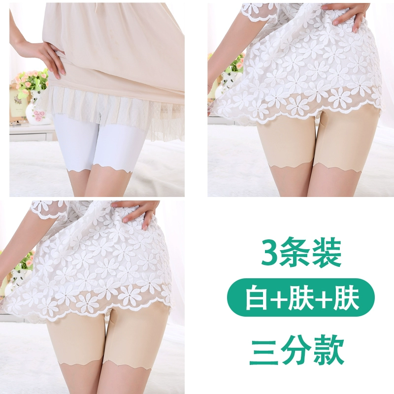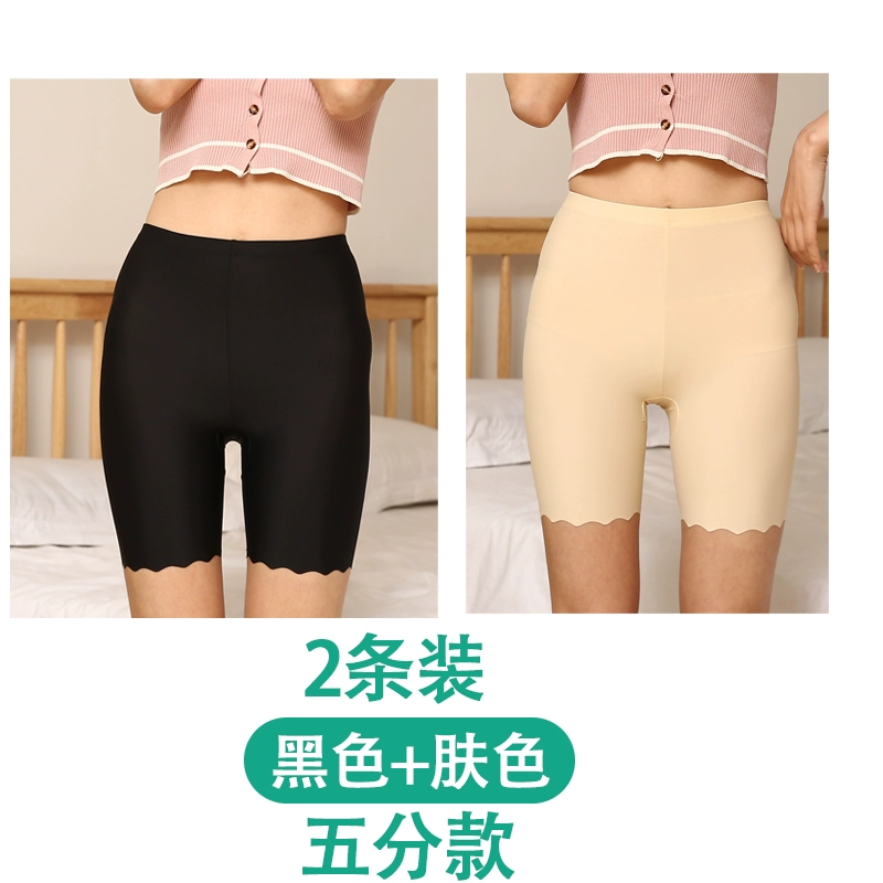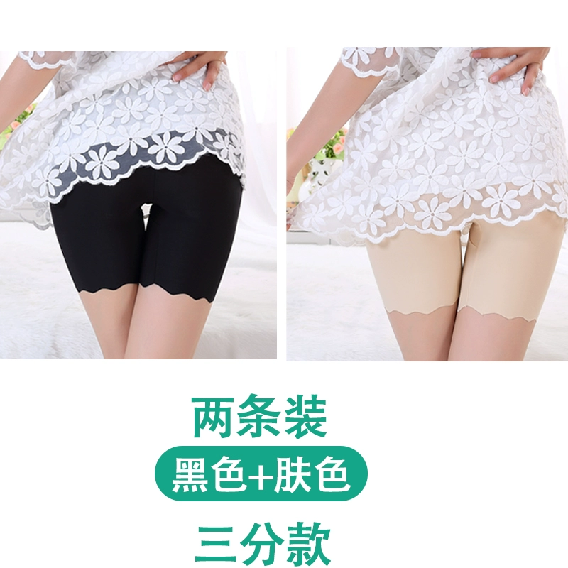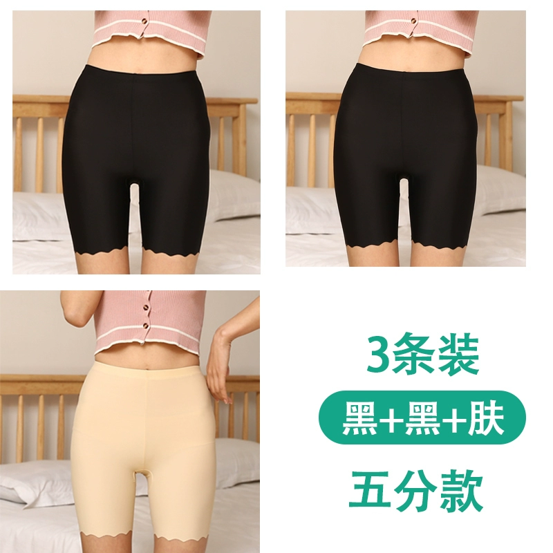 White traceless safety pants for women without rolling edges and anti-exposure summer fat mm large size five-point pants ice silk insurance leggings