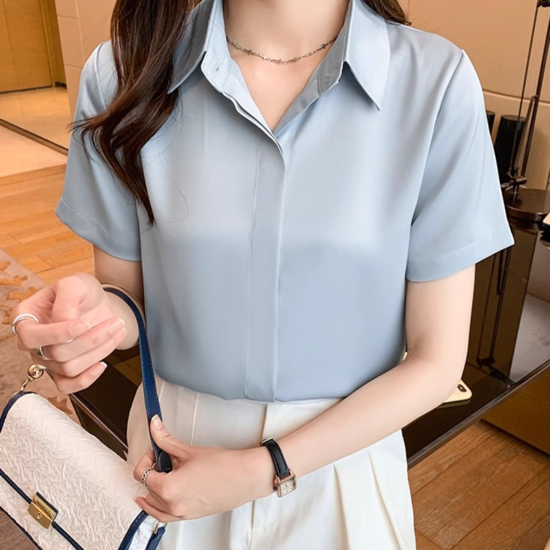 | nameOriginal | White Shirt Women 2024 New Summer Short Sleeve Lapel Sense Silk Satin Shirt Design Sense Top |