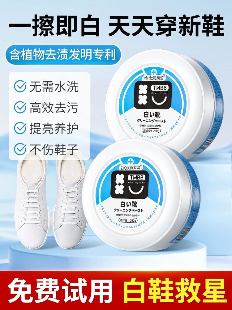 | nameOriginal | White shoe cleaning cream, cleaning agent, decontamination, whitening, yellowing, deoxidation, no-wash shoe cleaning, shoe polishing artifact |