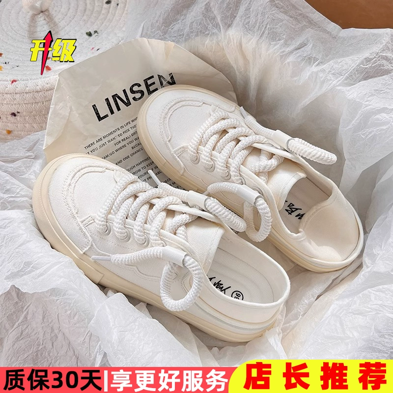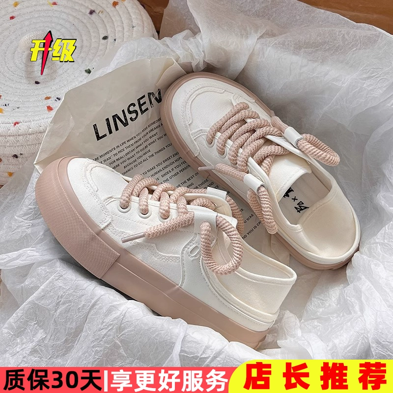 White shoes, rose red feet, two-piece low-top canvas shoes