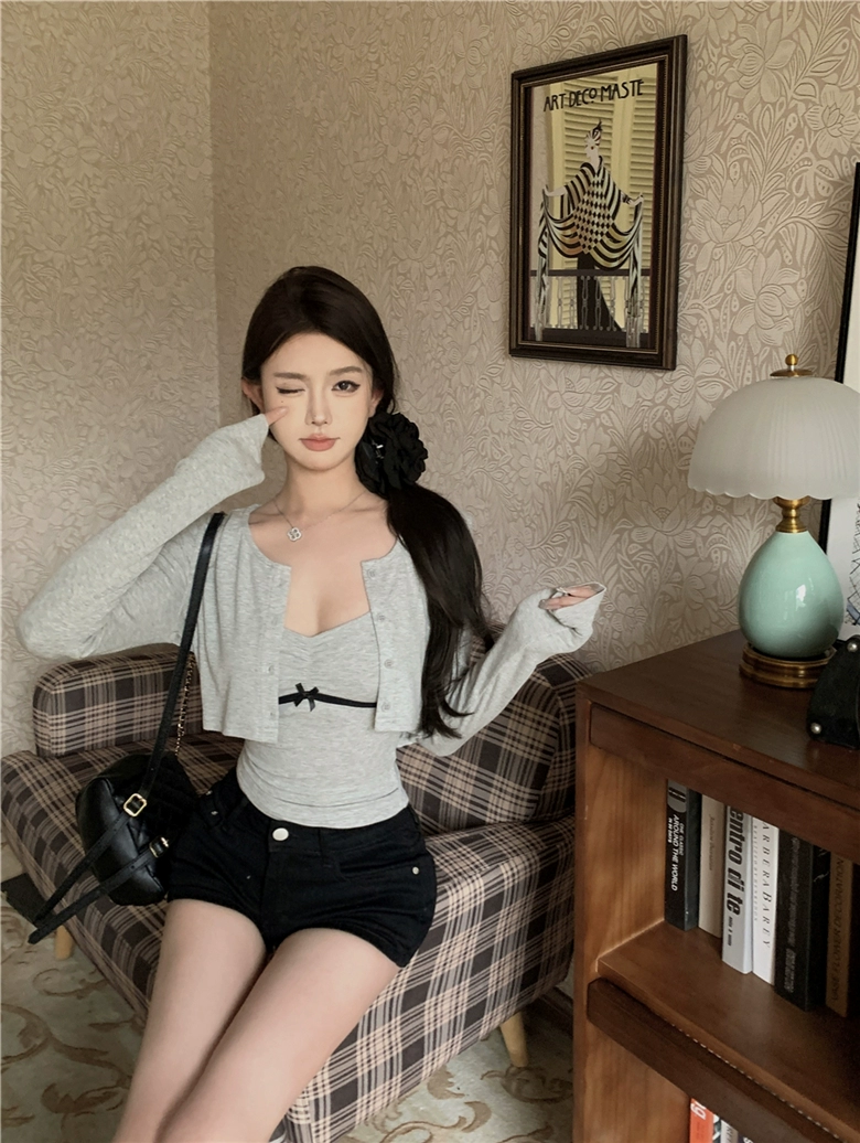 | nameOriginal | White short long sleeve bow camisole cardigan |