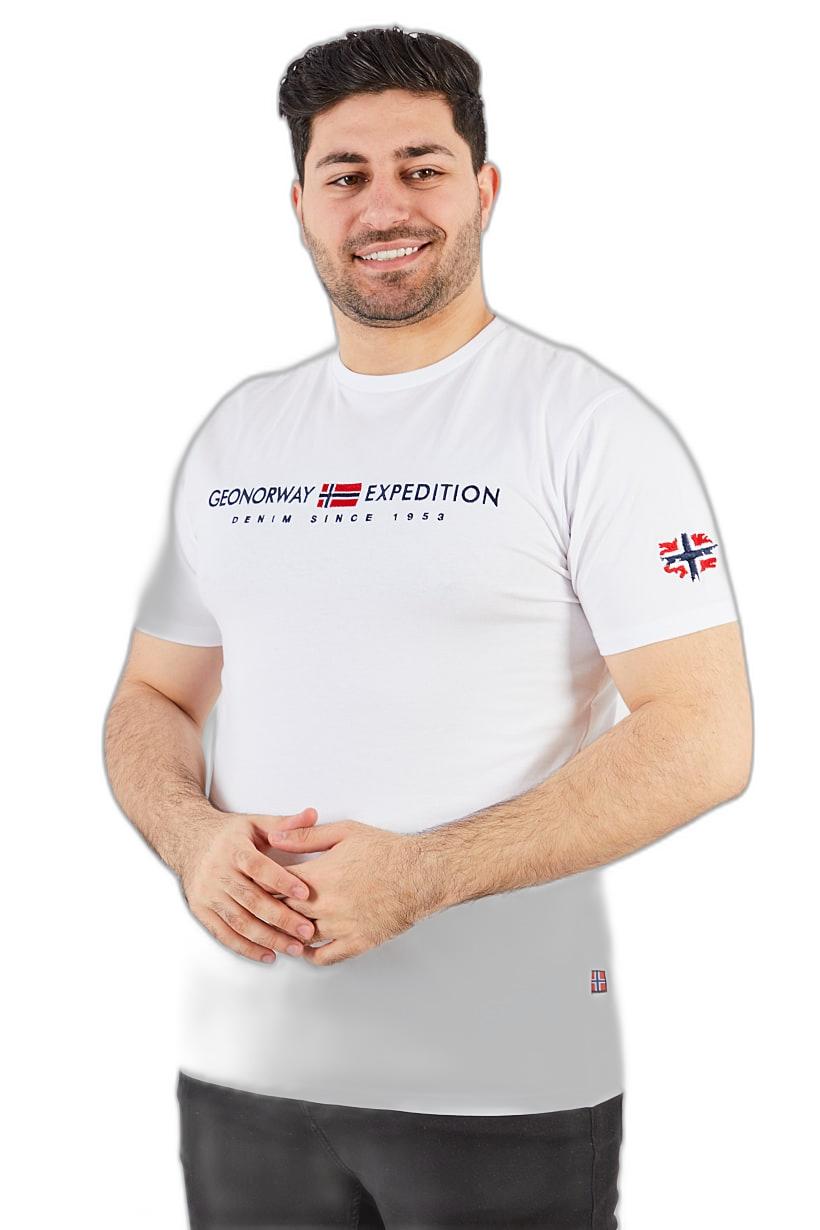 Men Crew Neck Short Sleeve Embroidered Logo T-Shirt, White