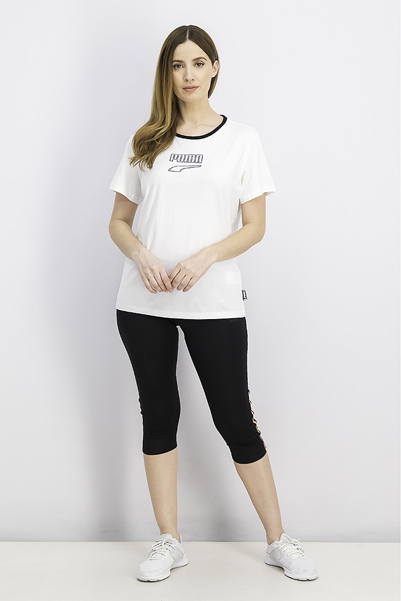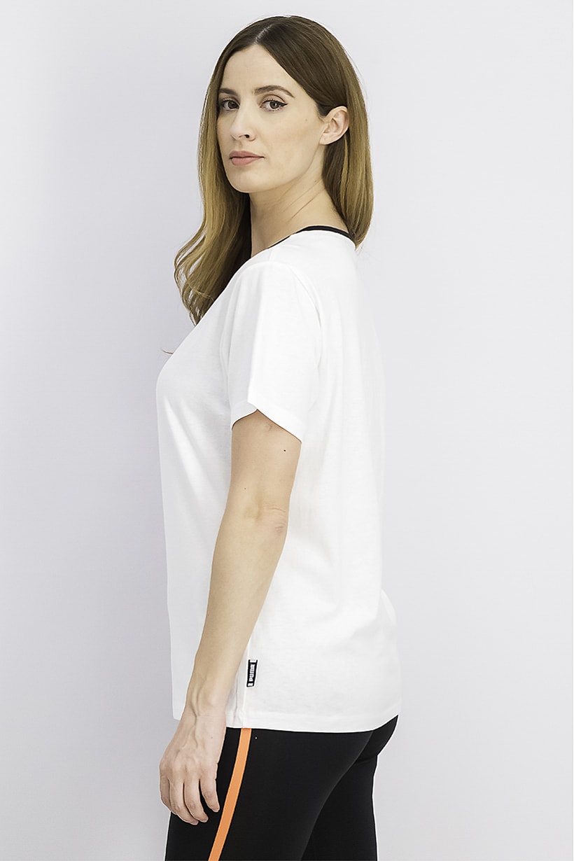Care : Machine washable, Fit : Sportswear Fit, Ideal For : Women, Size shown : US, Sleeve Length : Short Sleeve, Thickness : Light, Type of Sport : Training, Types of Hem : Straight hem, Types of Neckline & Collar : Crew neckline, Types of Sleeve : Short sleeve, Disclaimer : Product color may slightly vary due to photographic lighting sources or your monitor settings., Fabrics : 100% Cotton, Pattern & Print : Brand Logo, Sportswear Type : T-Shirt, Types of Closures : Pullover, Color Family : White,